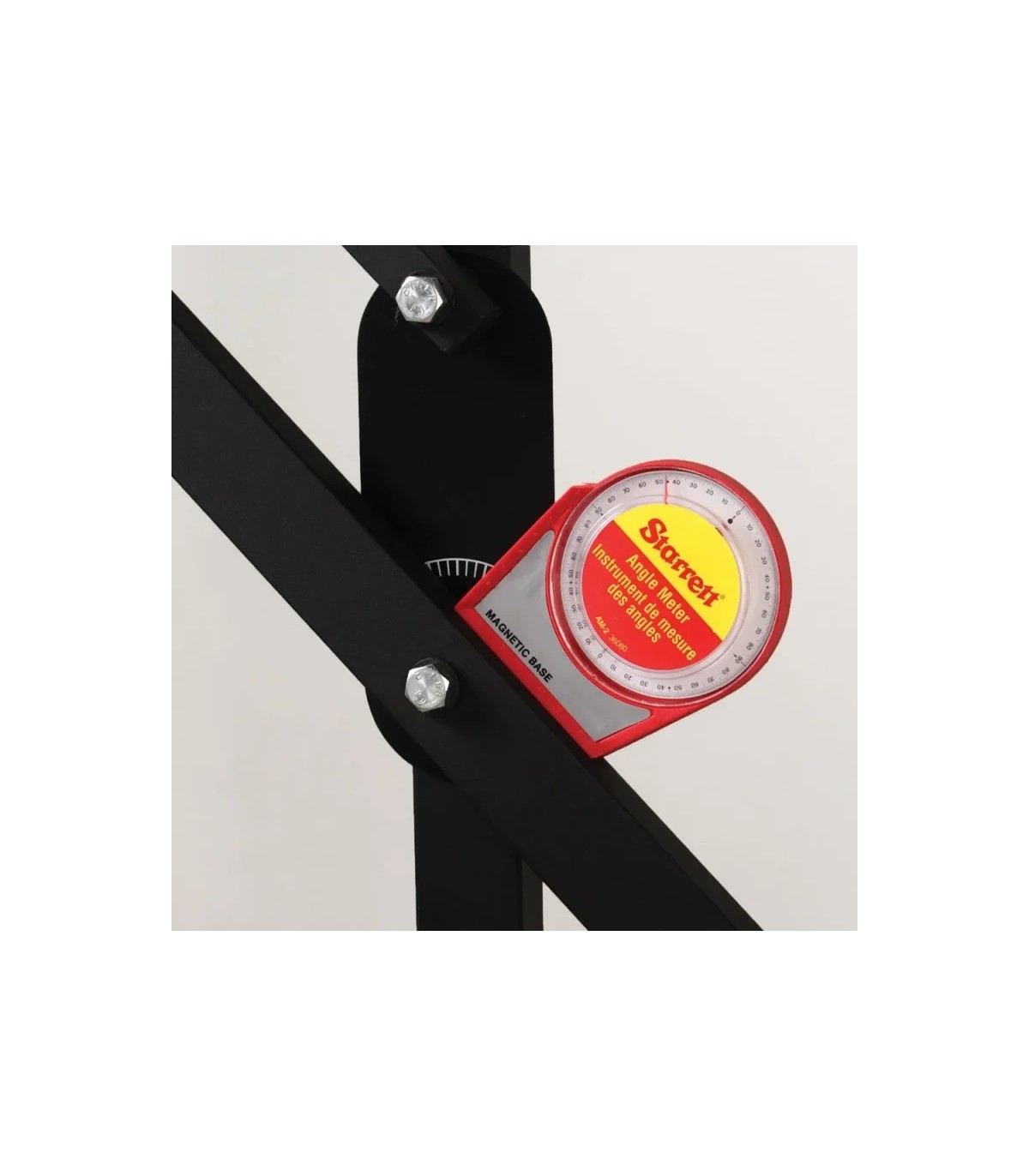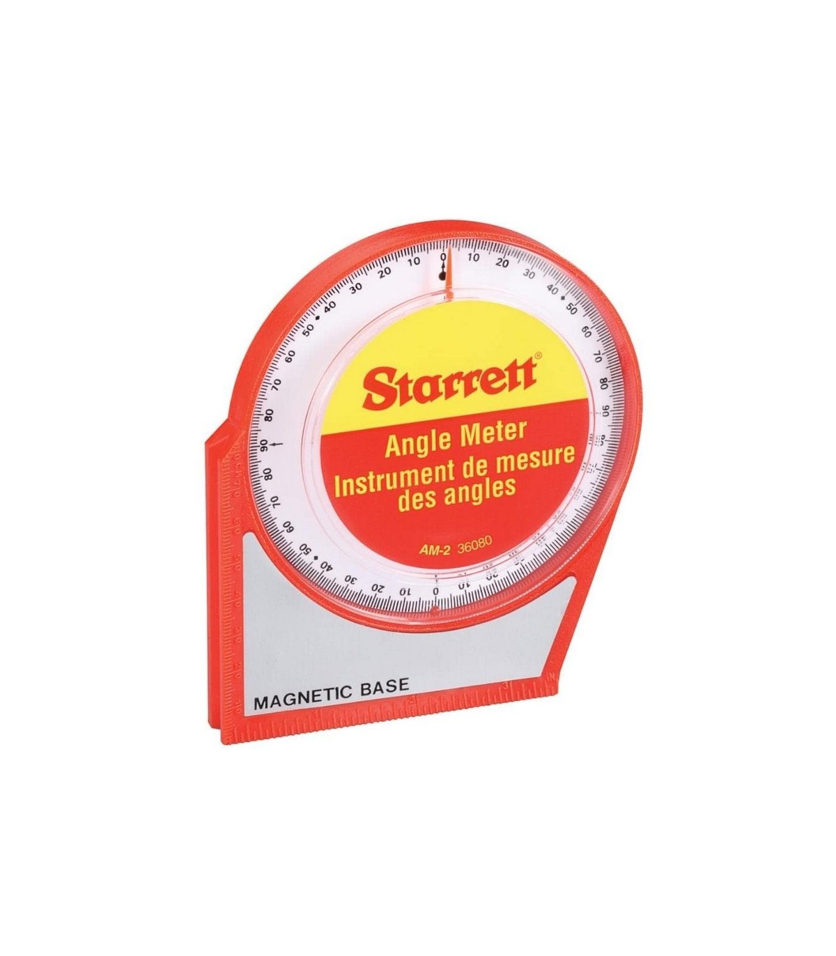 Medidor de ángulos Starrett AM2 con gran escala graduada para lecturas precisas de 0º a 90º en cualquier cuadrante.