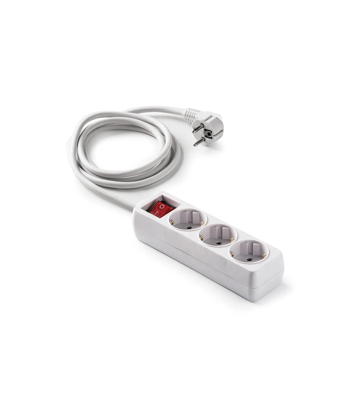 Base múltiple con 3 tomas, interruptor, cable de conexión. Con protección.