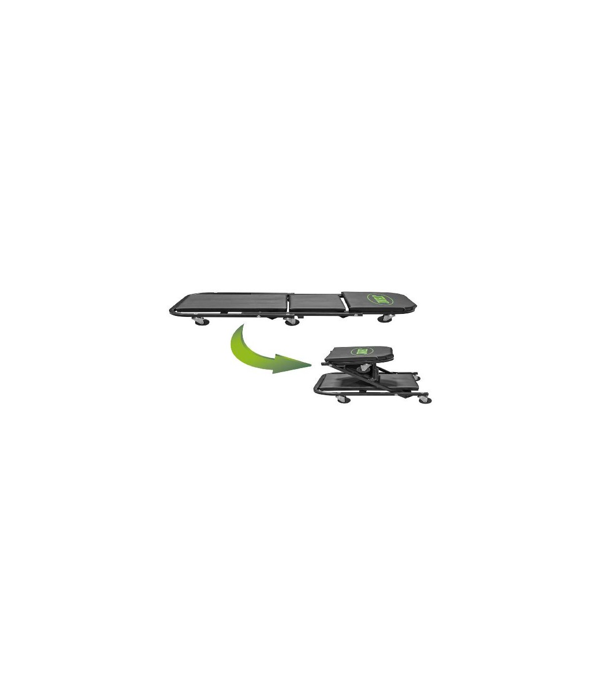 Totalmente acolchada, con 6 ruedas locas.