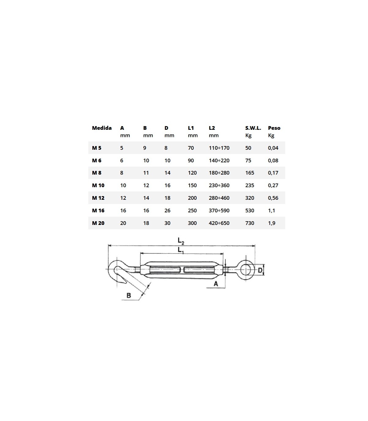 TENSOR ABIERTO GANCHO-ANILLA INOX M-6