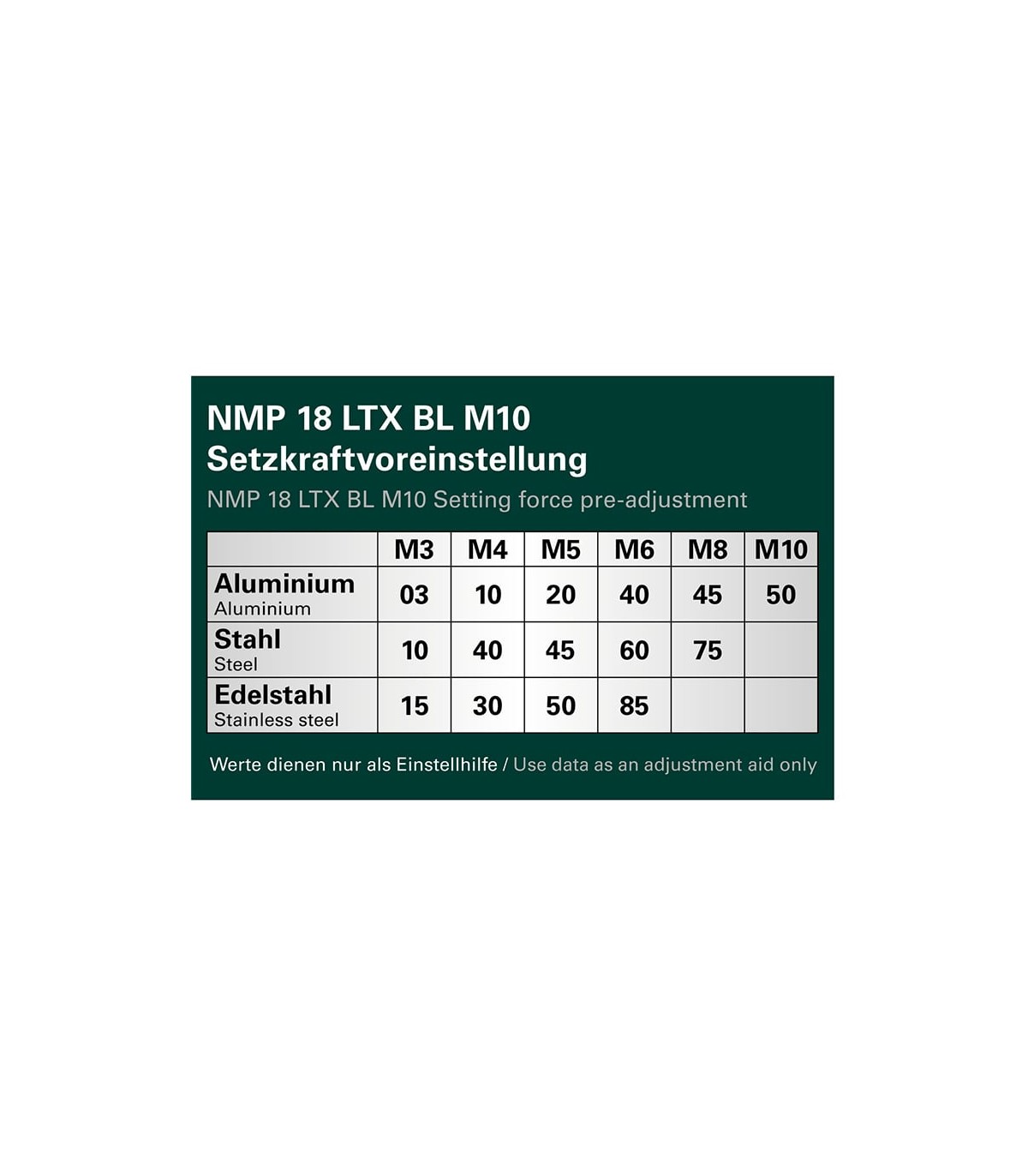 REMACHADORA TUERCAS METABO NMP18LTX-BL 2 BAT 4 Amp Cap. M6-M10 **DOTACION M4-M5-M6