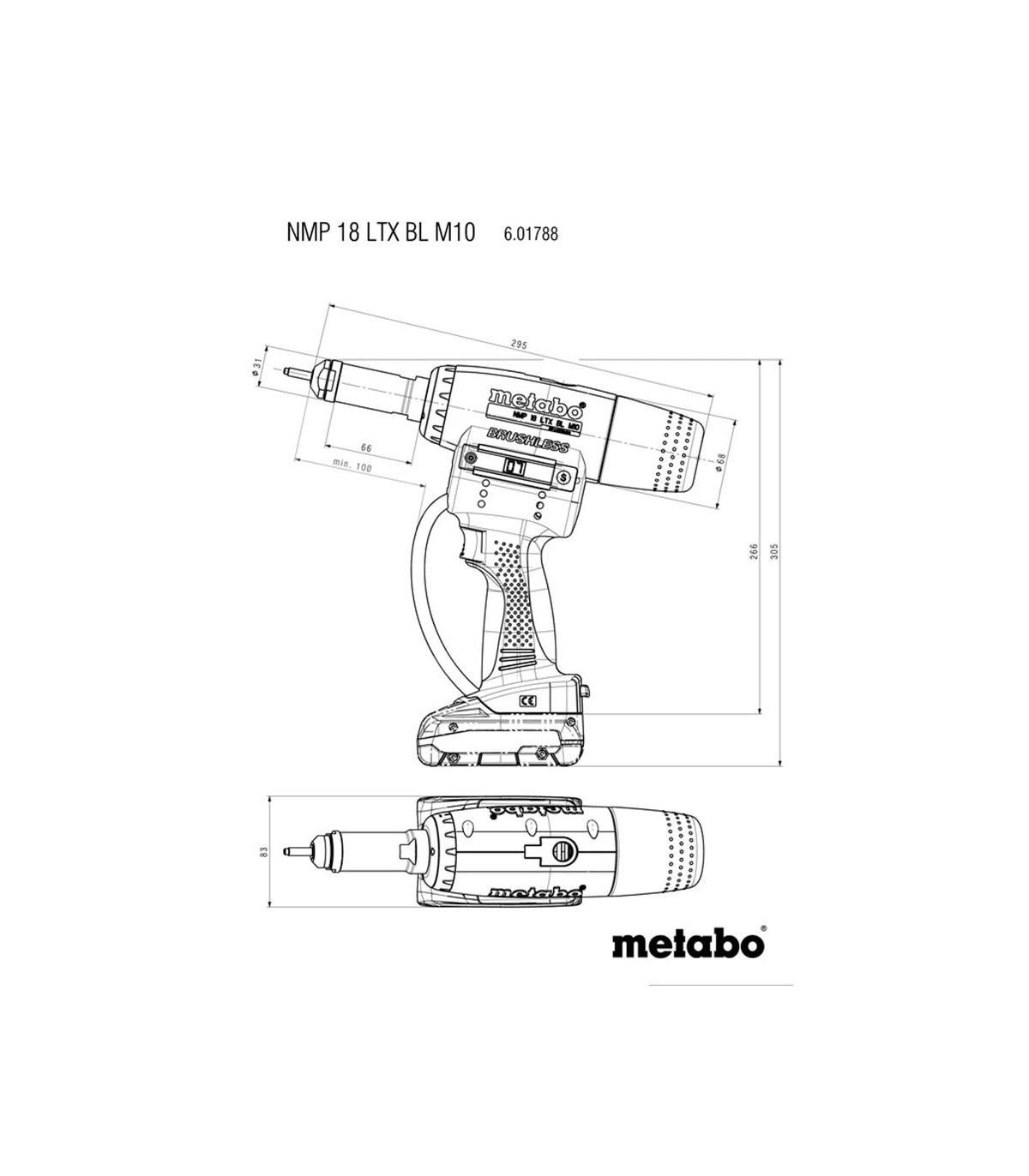 REMACHADORA TUERCAS METABO NMP18LTX-BL 2 BAT 4 Amp Cap. M6-M10 **DOTACION M4-M5-M6