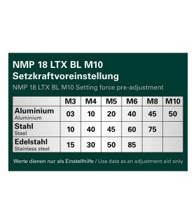 • Pistola de tuercas remachables de batería con regulación de la fuerza de ajuste para tuercas remachables en ciego hasta M10 en aluminio, M8 en acero, M6 en acero Inox