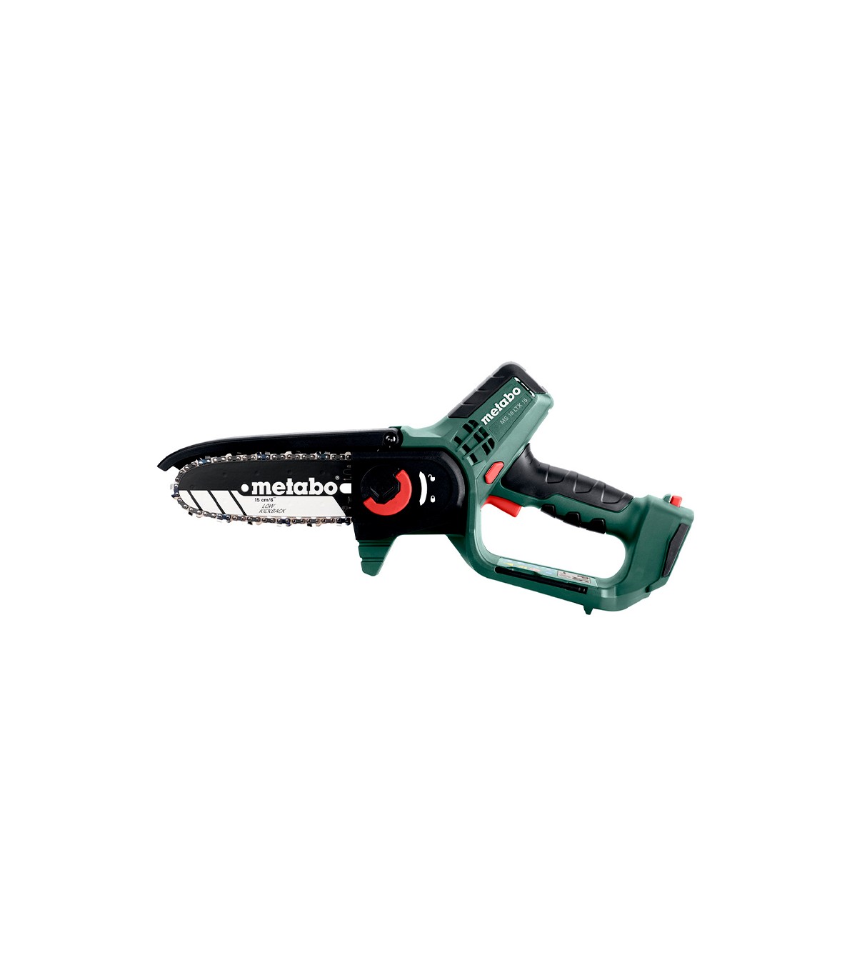 Sierra para madera de batería manejable y segura, ideal para podar árboles y arbustos, así como para trabajos de residuos verdes.