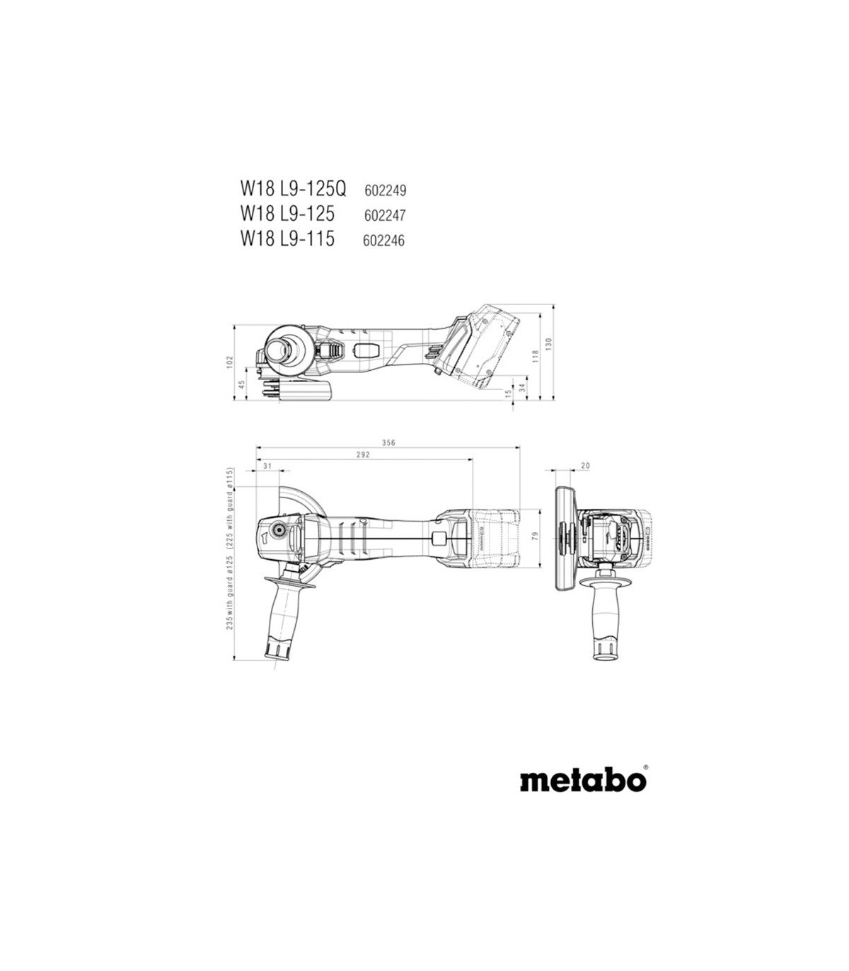 MINI RADIAL BATERIA 125MM W18L-9-125 SIN BATERIA SOLO CARCASA METABO