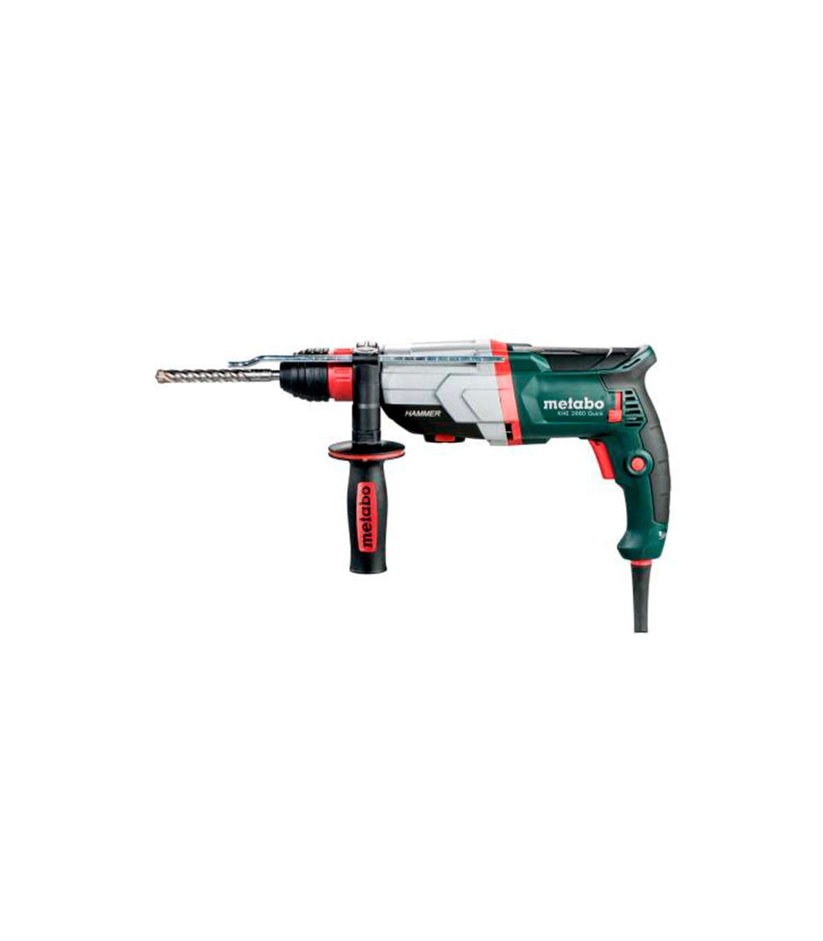 • Quick de Metabo: cambio rápido entre mandril de martillo SDS-Plus y portabrocas de sujeción rápida para perforar en madera y metal