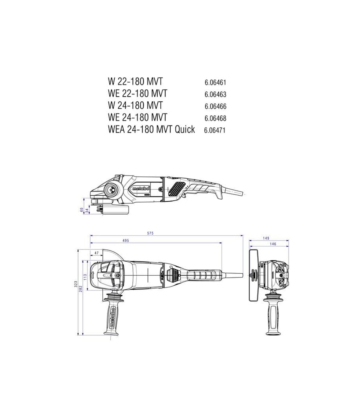 AMOLADORA 2200W-Ø180 HOMBRE-MUERTO W 22-180 MVT (ANGULAR)