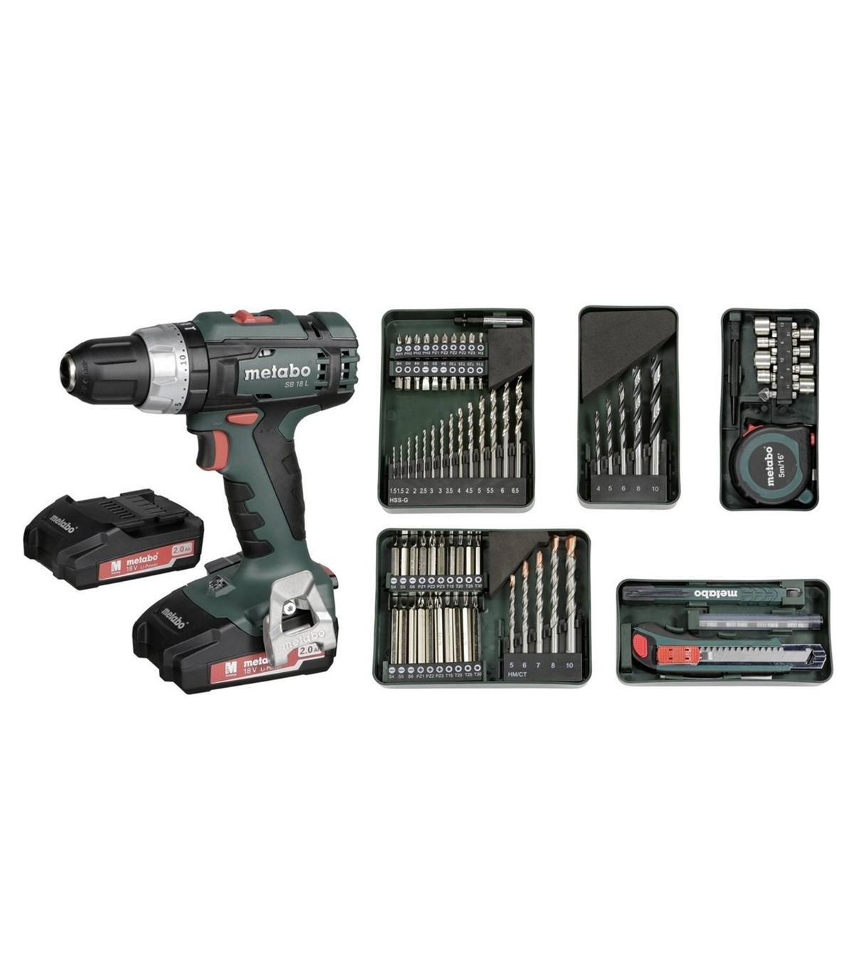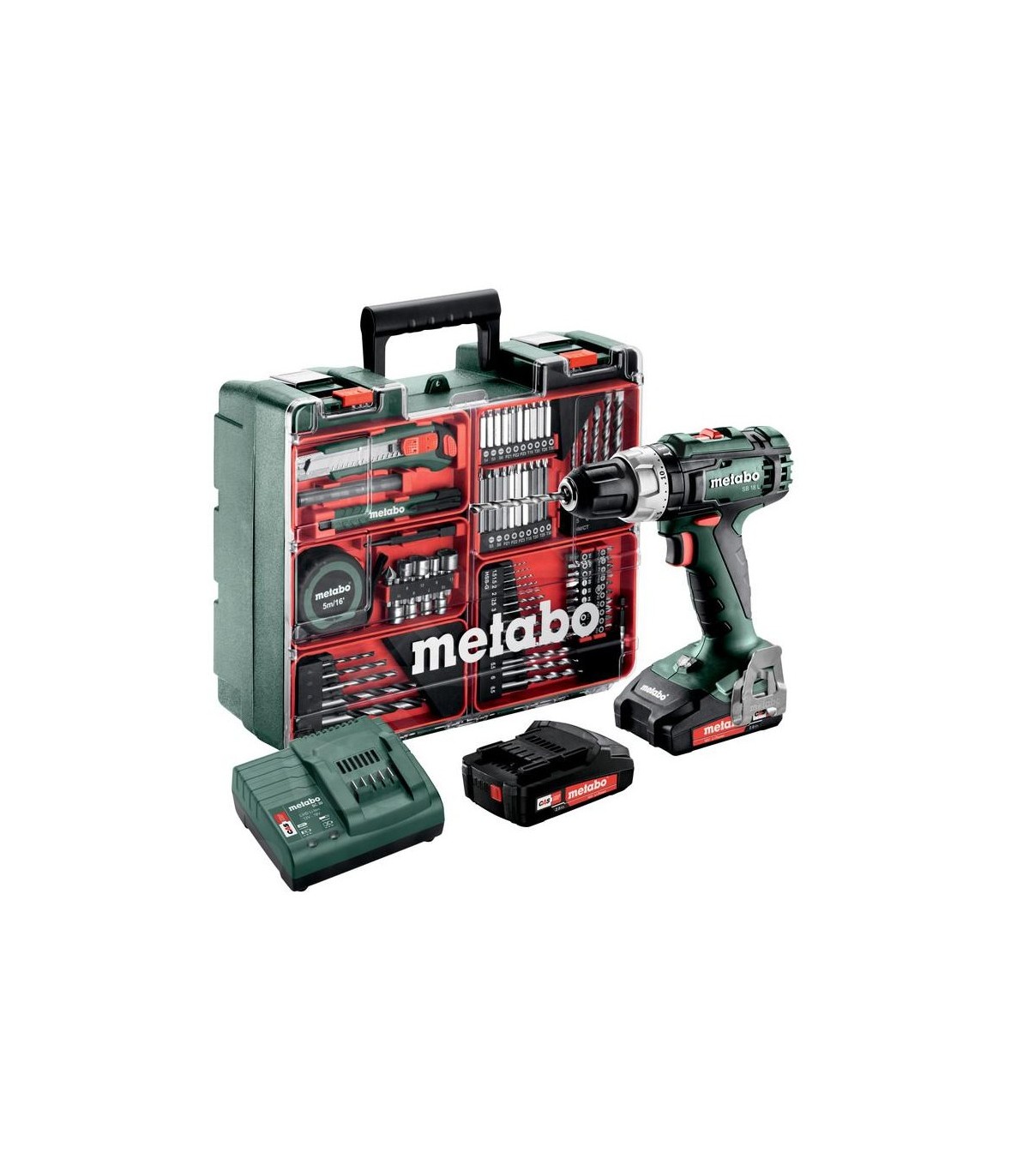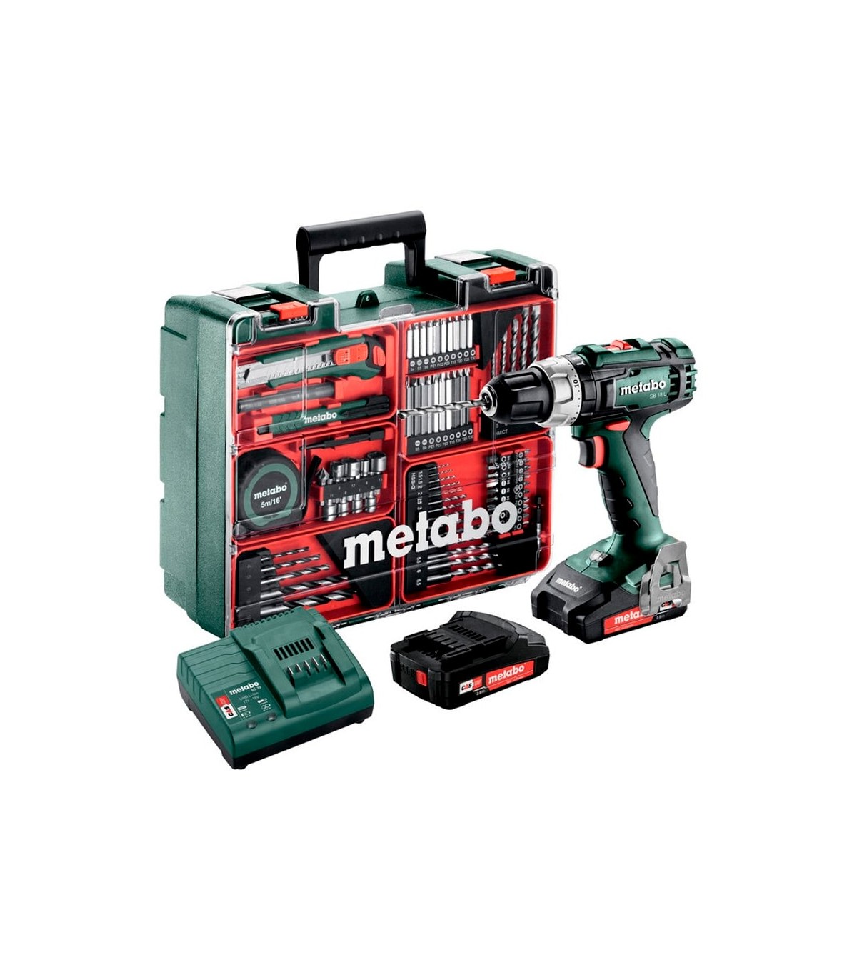 Kit de servicio básico, taladro con 2 baterias y 79 accesorios surtidos. Metabo SB18L