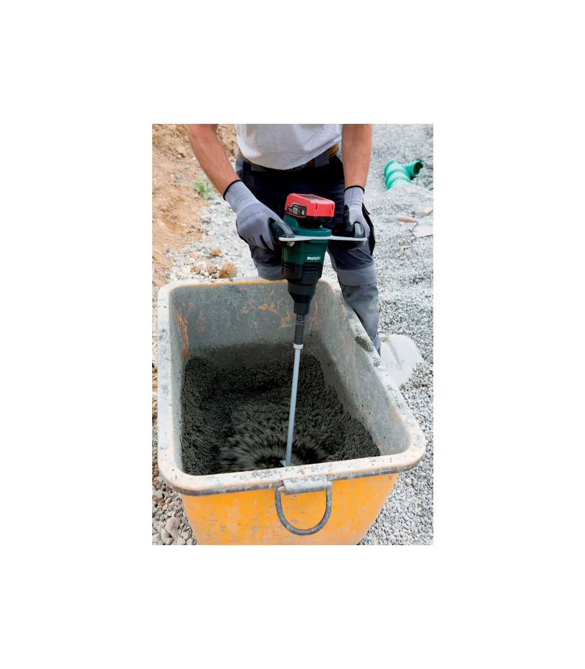 Agitador de batería para mezclar con potencia en la obra.