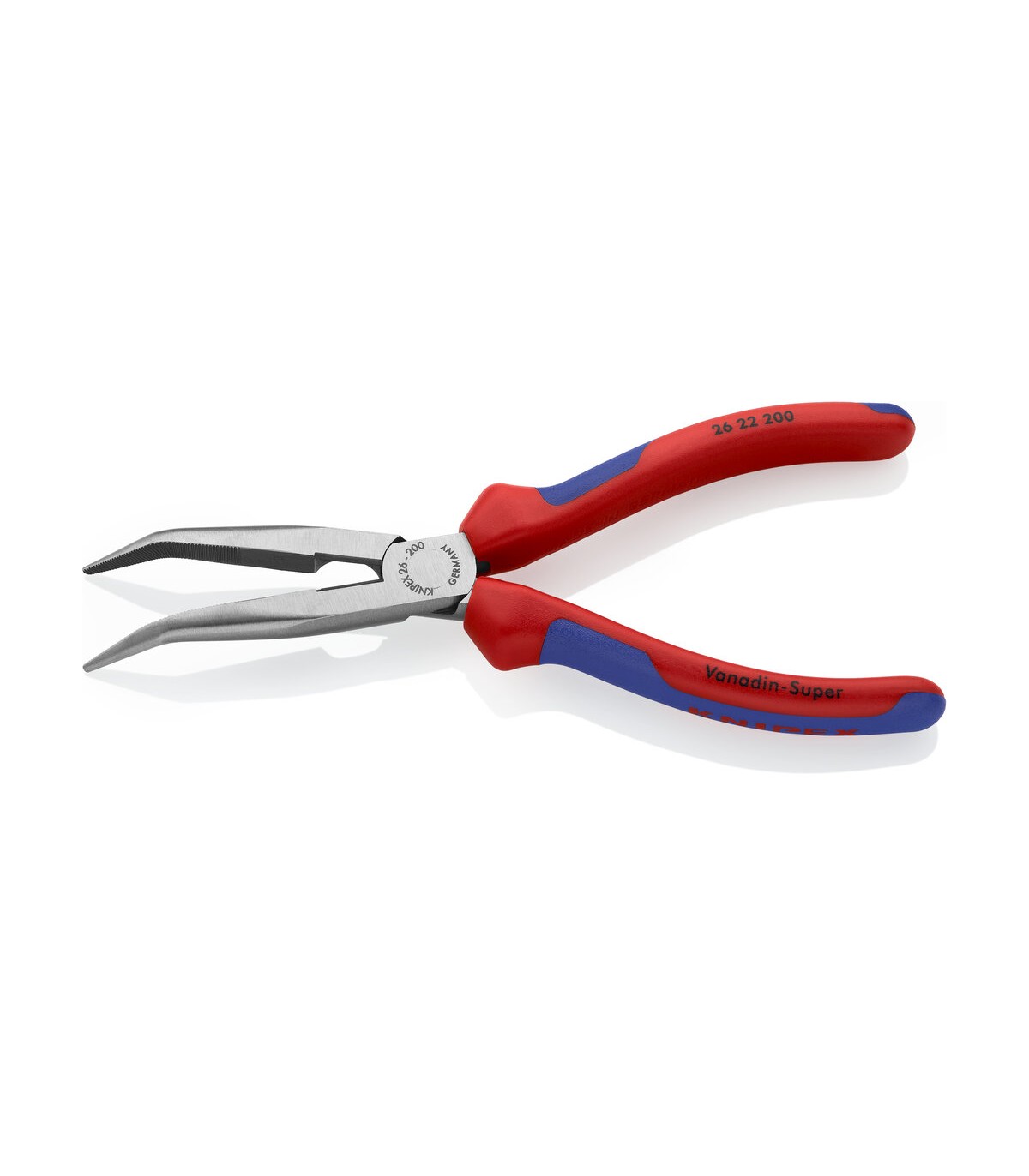 Puntas elásticas: estabilidad en caso de torsión. Puntas de precisión elásticas con tolerancia de torsión. Boca larga semi-redonda que termina en punta. Con filos para alambre blando, semiduro y duro. Filos de corte templados adicionalmente por inducción. Dureza aprox. de los filos 61 HRC. Mordaza en ángulo de 40º.