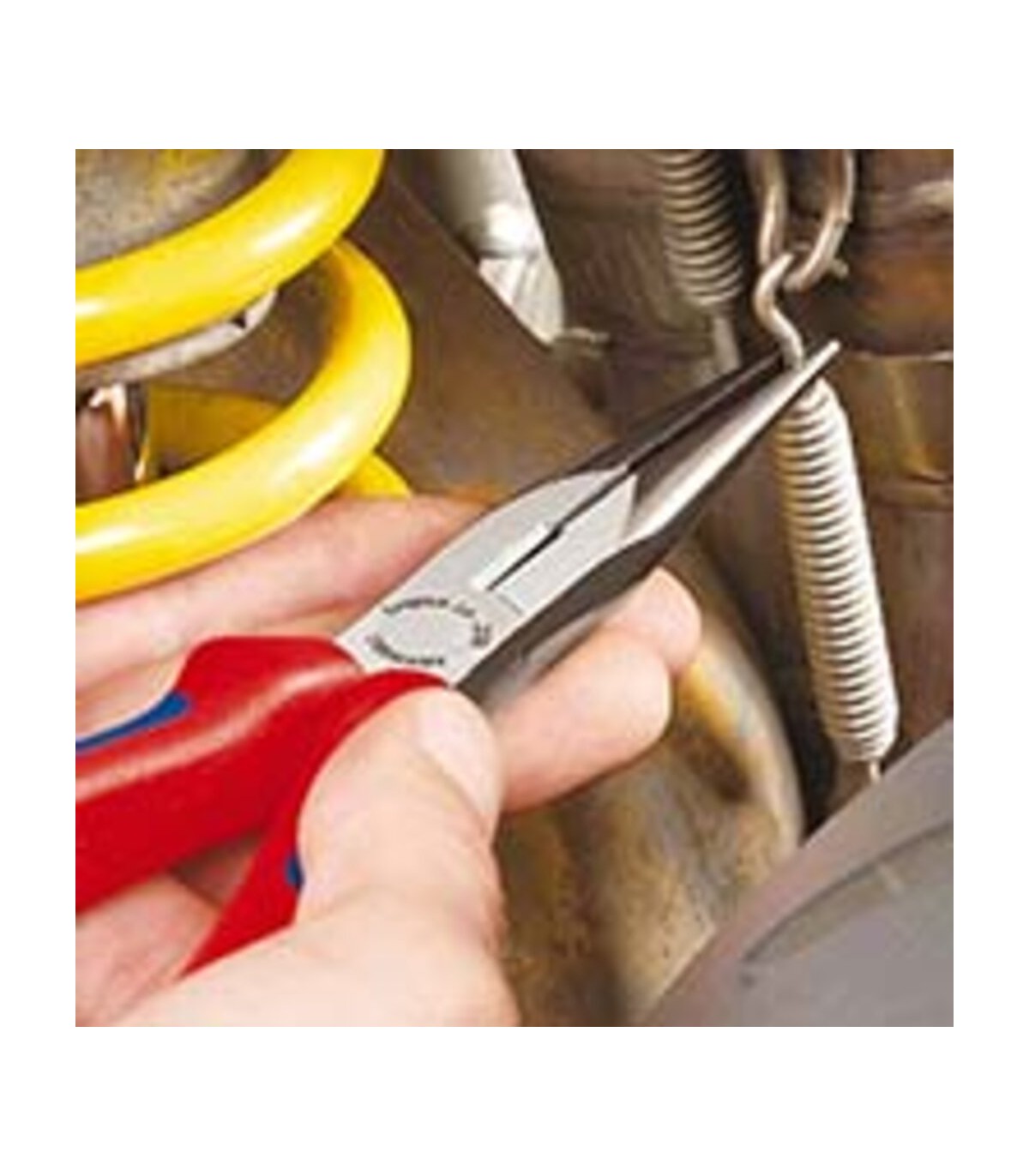 Puntas elásticas: estabilidad en caso de torsión. Puntas de precisión elásticas con tolerancia de torsión. Boca larga semi-redonda que termina en punta. Con filos para alambre blando, semiduro y duro. Filos de corte templados adicionalmente por inducción. Dureza aprox. de los filos 61 HRC. bocas rectas.