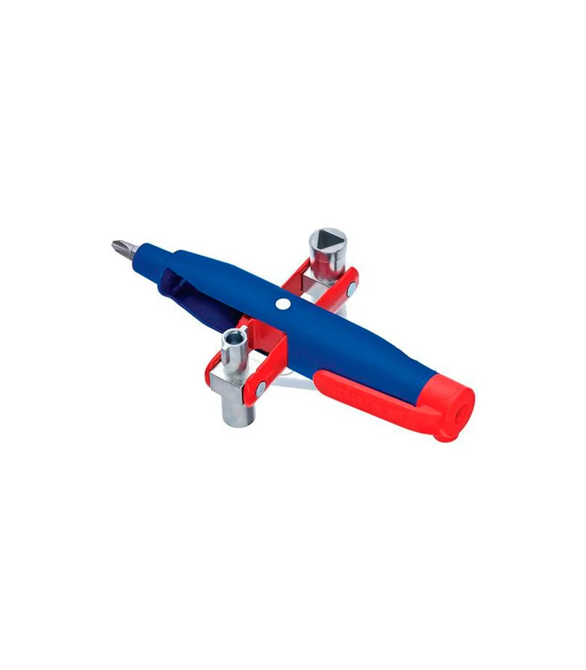 Llave para armarios de control, fácil de transportar en forma de bolígrafo con clip de sujeción. Sacando el soporte de la llave se puede disponer de cuatro perfiles de llaves diferentes. Para armarios de control y para sistemas de paso de gas, agua y electricidad. Para instalaciones técnicas de edificios p. ej.: sistemas de aire acondicionado y ventilación, válvulas de paso, cuadros eléctricos, etc.. Alojamiento universal para puntas bit de ¼ “ para puntas bit comerciales (imán permanente para la fijación). Con adaptador de 1/4"" para puntas bit en un perfil de la llave. Con 2 puntas bit reversibles: ranura en cruz PH / ranura 7,0 x 1,2 y TX20 / TX25. cartulina autoservicio/blíster.