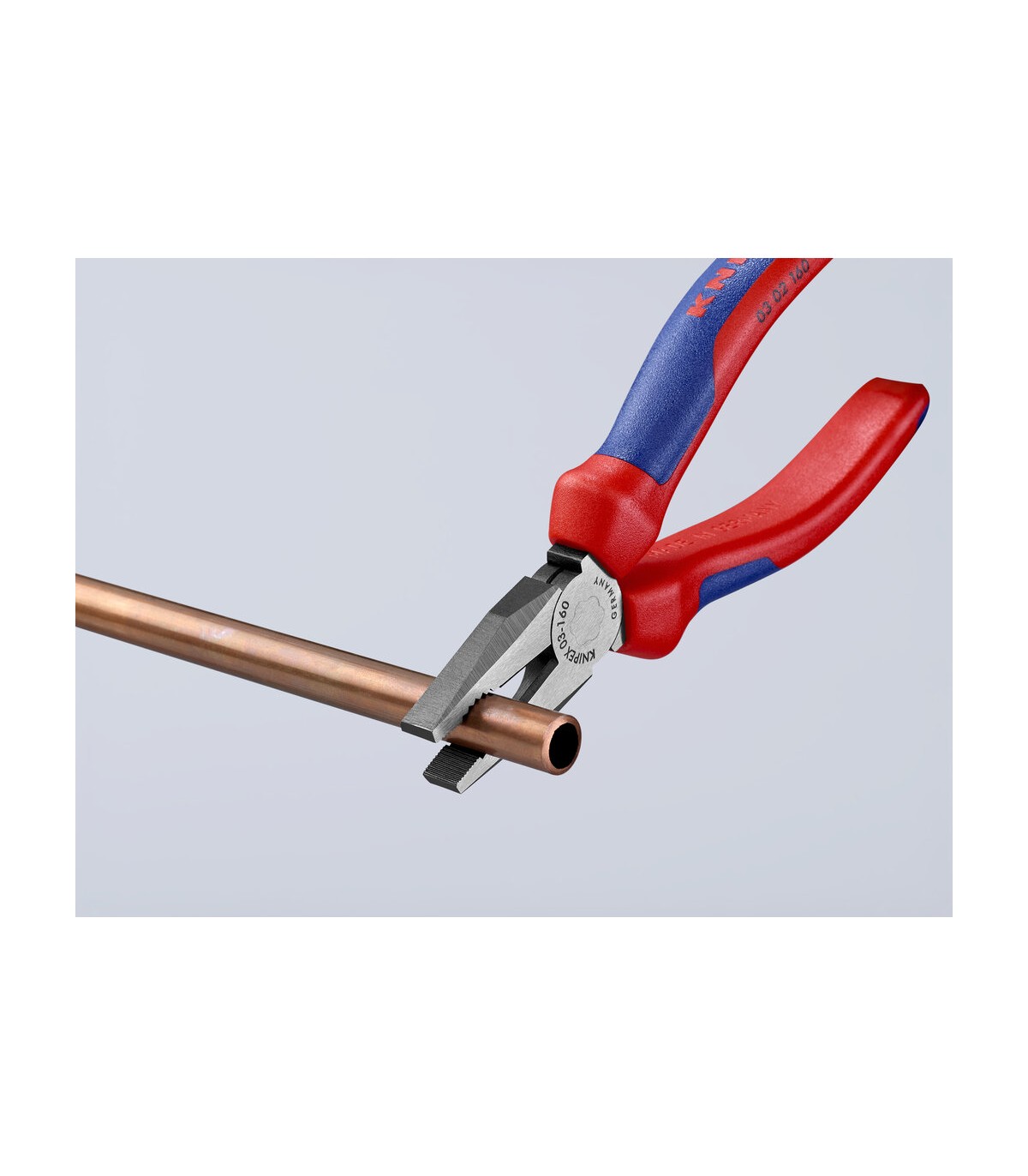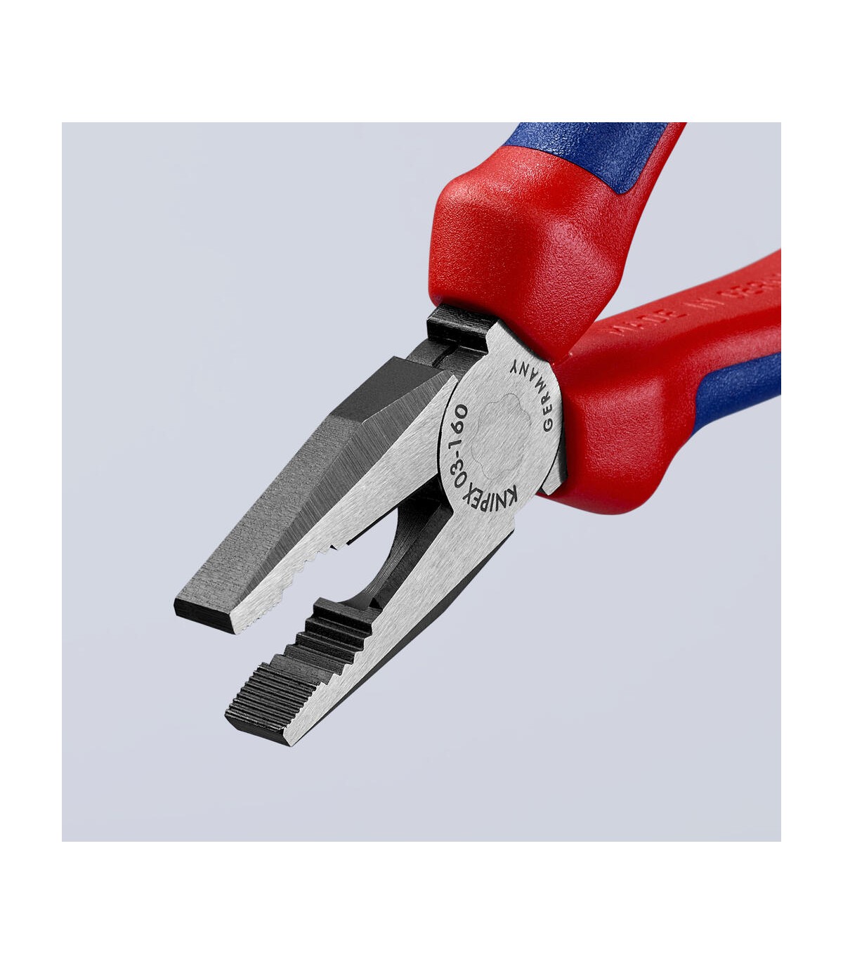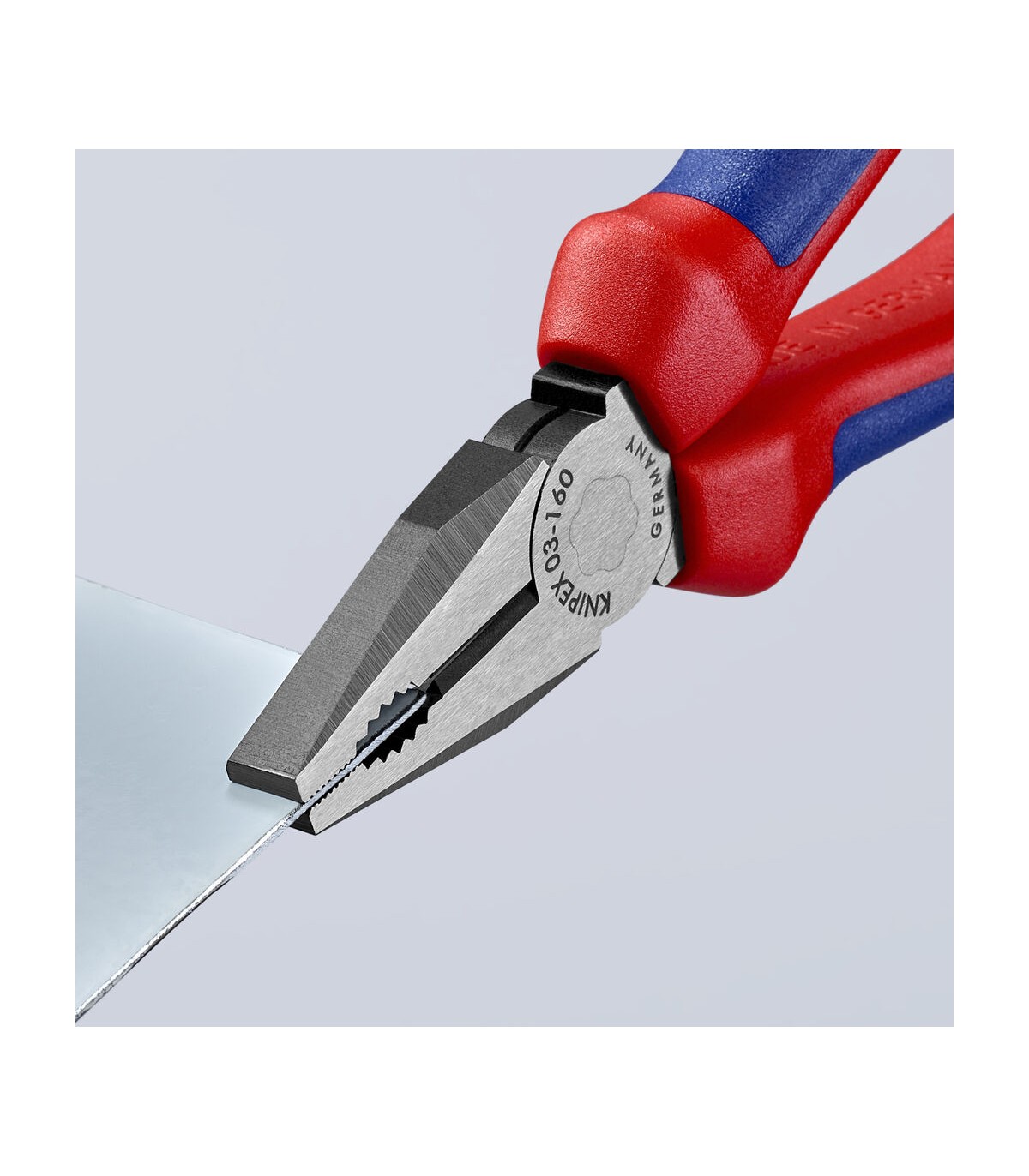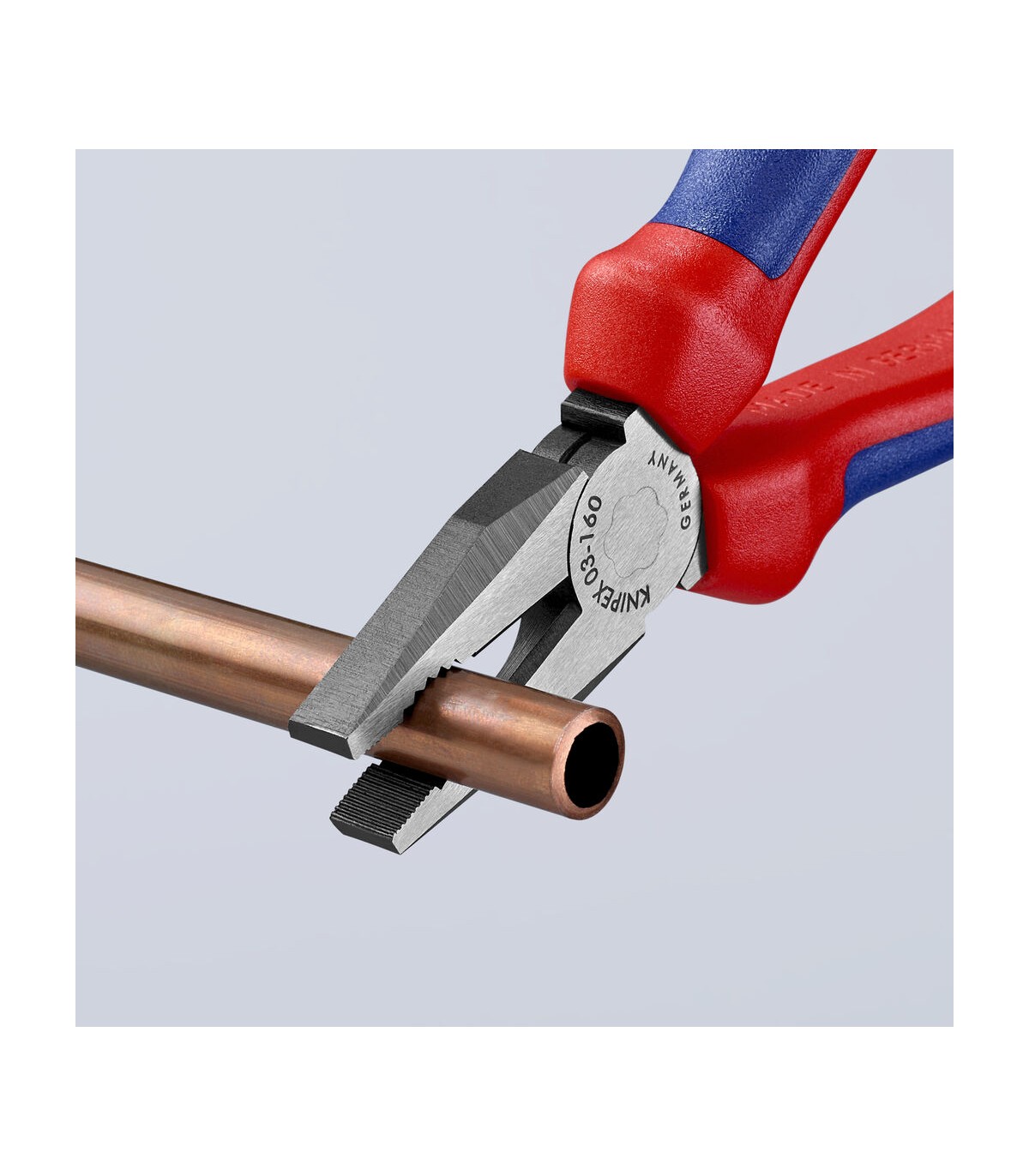 Con zonas de agarre para materiales planos y redondos, muy versátil. Para cortar alambre blando y duro. Con filos de corte largos para cortar cables más gruesos. Filos de corte templados adicionalmente por inducción; dureza aprox. de los filos 60 HRC.