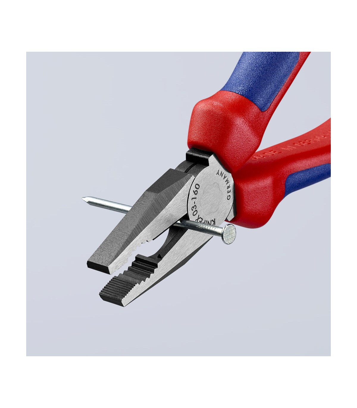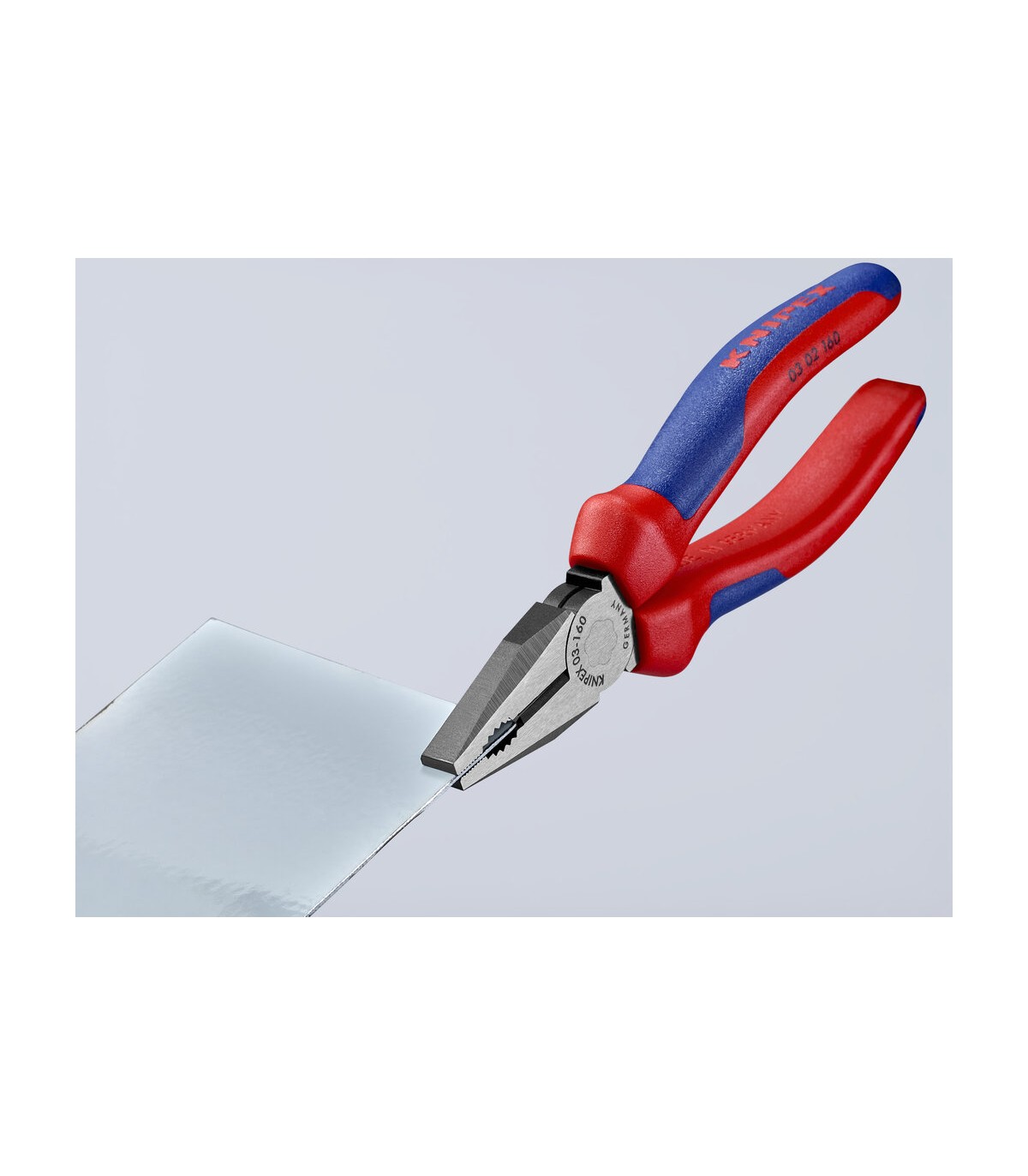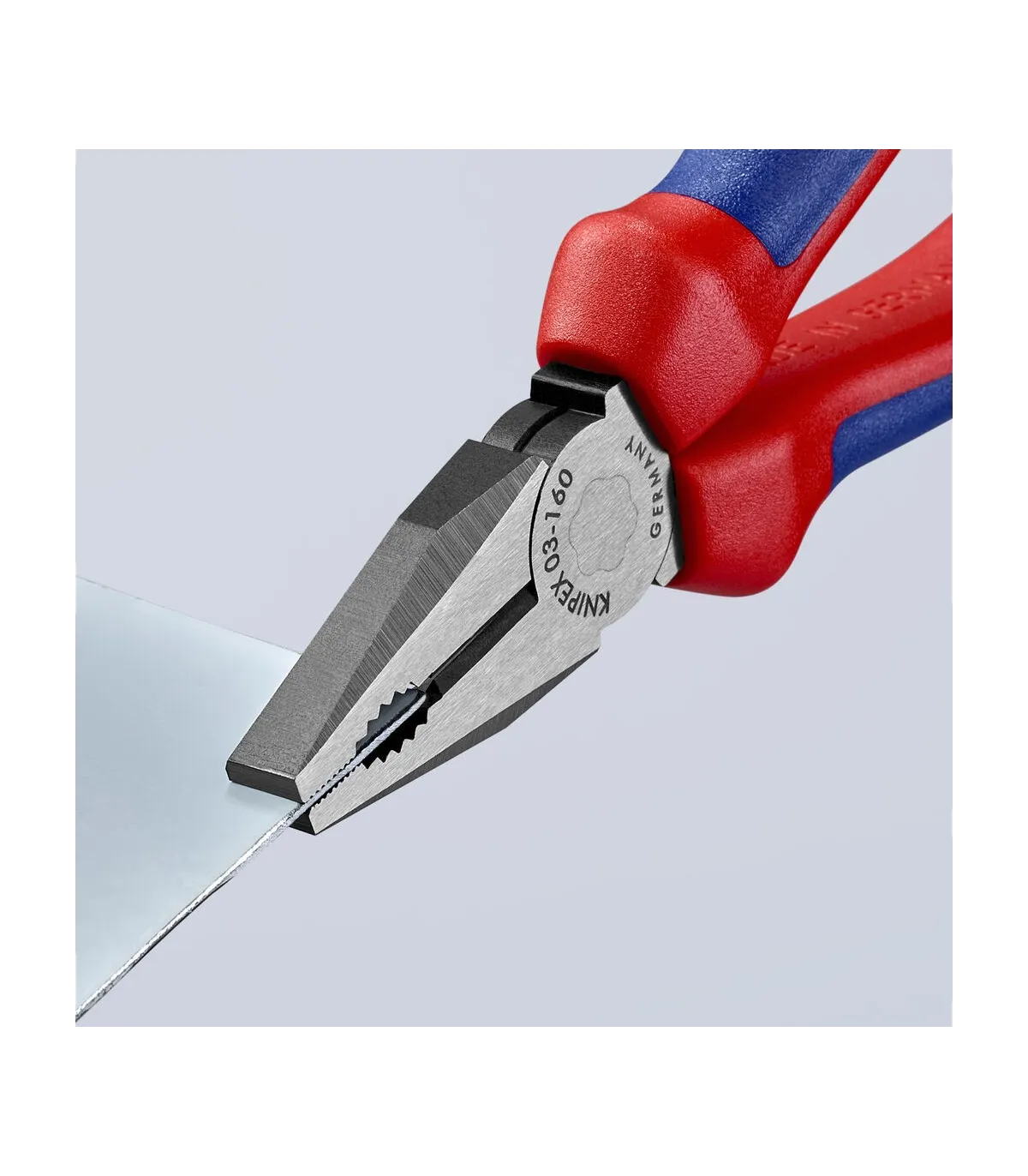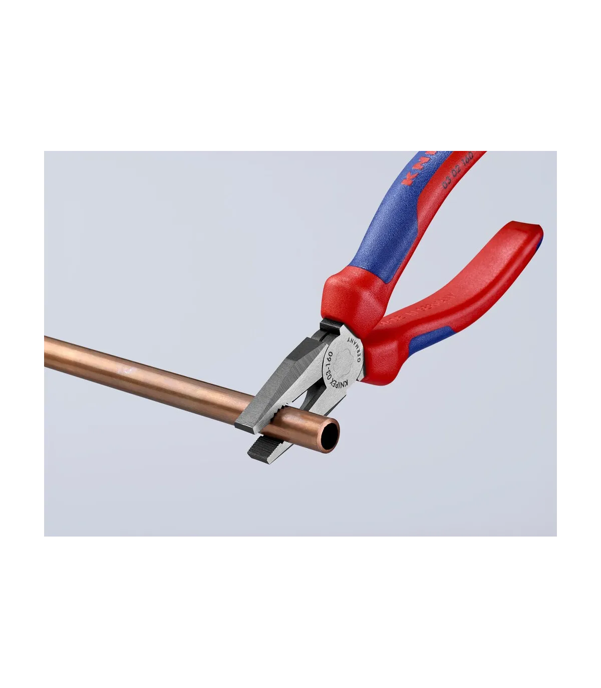 Con zonas de agarre para materiales planos y redondos, muy versátil. Para cortar alambre blando y duro. Con filos de corte largos para cortar cables más gruesos. Filos de corte templados adicionalmente por inducción; dureza aprox. de los filos 60 HRC.