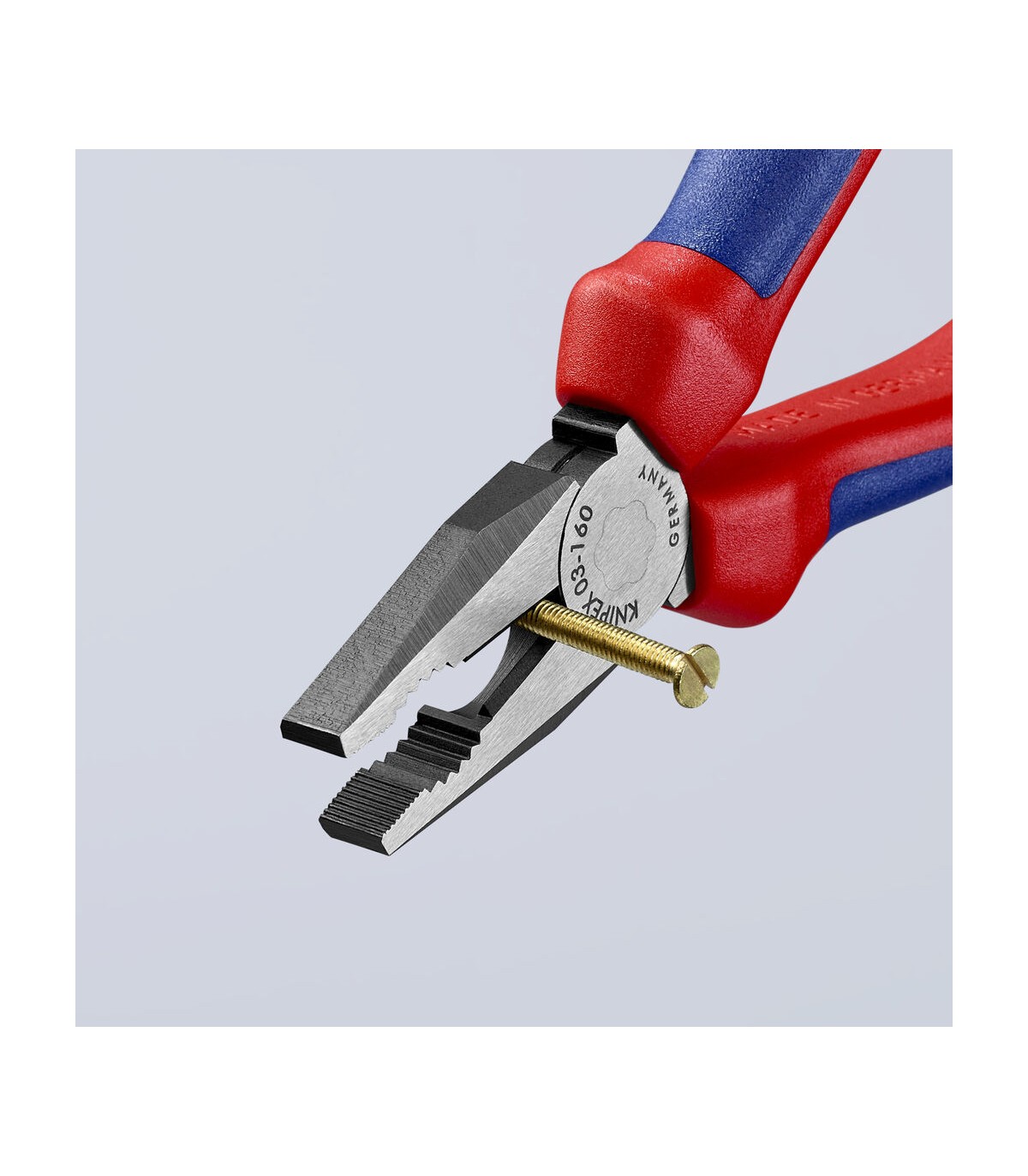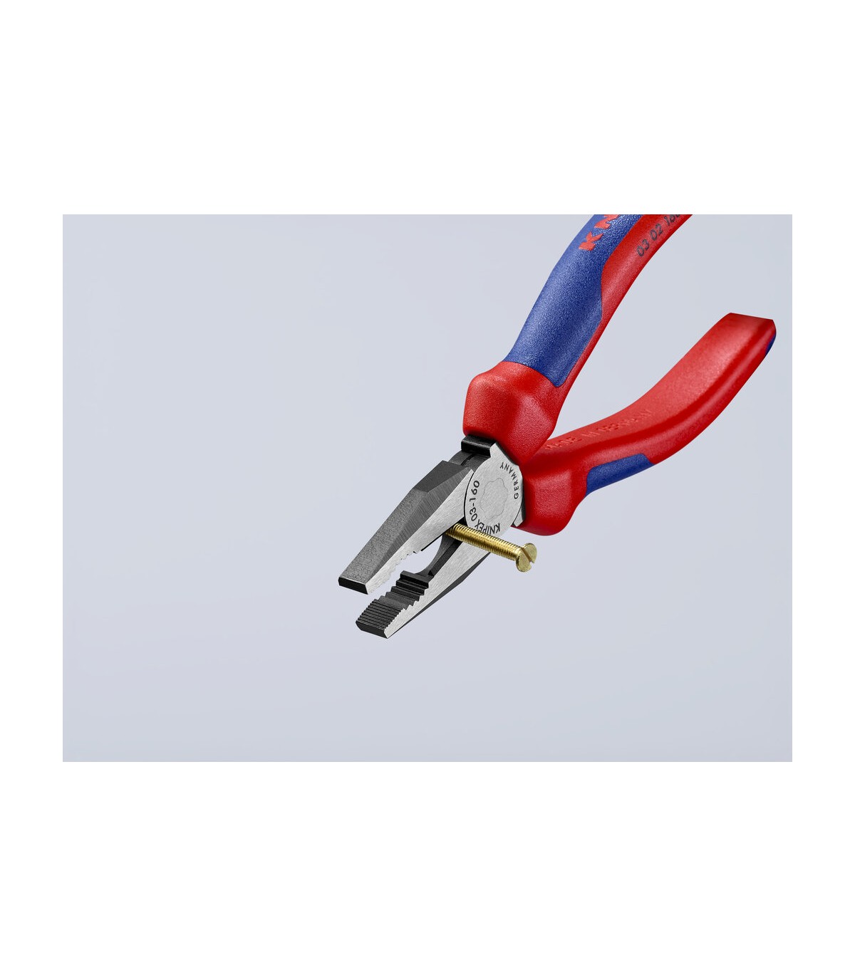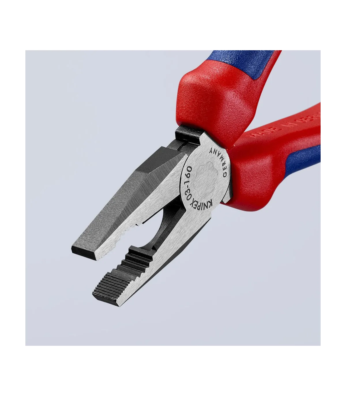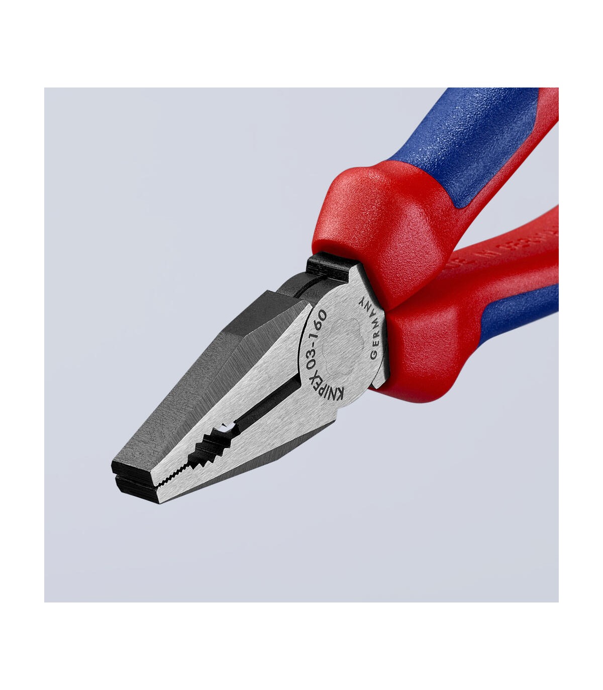 Con zonas de agarre para materiales planos y redondos, muy versátil. Para cortar alambre blando y duro. Con filos de corte largos para cortar cables más gruesos. Filos de corte templados adicionalmente por inducción; dureza aprox. de los filos 60 HRC.
