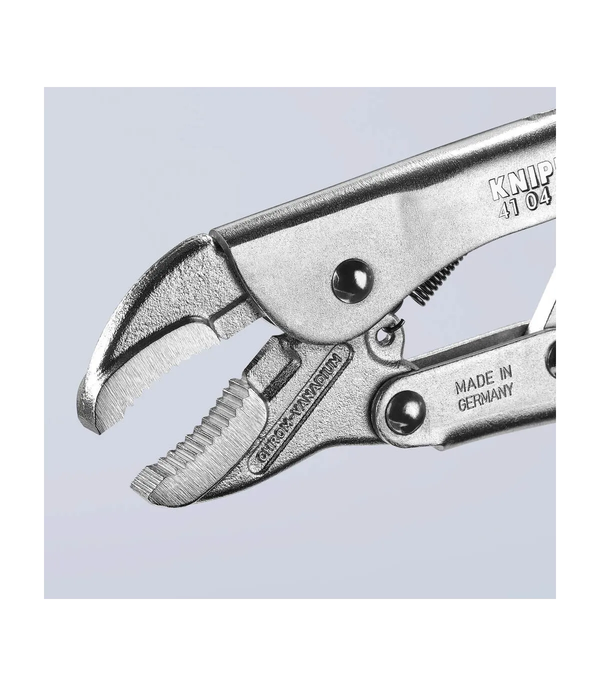 Sujetan con seguridad materiales redondos, perfilados y planos. Alta capacidad de carga. Con tornillo de ajuste y palanca de liberación. Uso con una mano. Alta presión de sujeción por la acción de la palanca. Boca para piezas redondas, con cortaalambres.