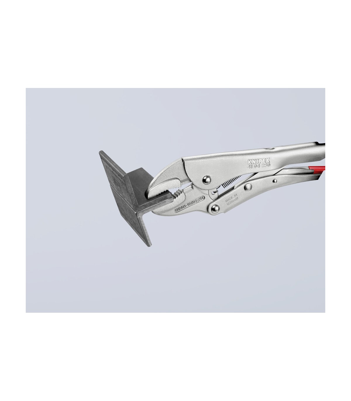 Sujetan con seguridad materiales redondos, perfilados y planos. Alta capacidad de carga. Con tornillo de ajuste y palanca de liberación. Uso con una mano. Alta presión de sujeción por la acción de la palanca.