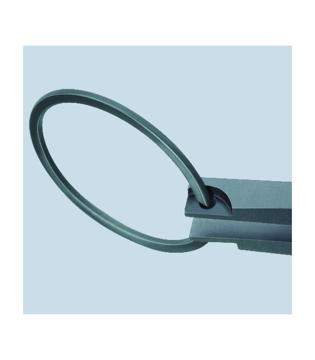 Para montaje de arandelas de resorte con forma de herradura y sin agujeros. Para árboles asegurados. Con muelle de apertura. Boca angulada con agujero central. Para arandelas de retención según estándar a partir de Ø 12 p. ej., en el aseguramiento del árbol articulado de reductor de un automóvil. Apertura mínima de las arandelas partidas 2,2.