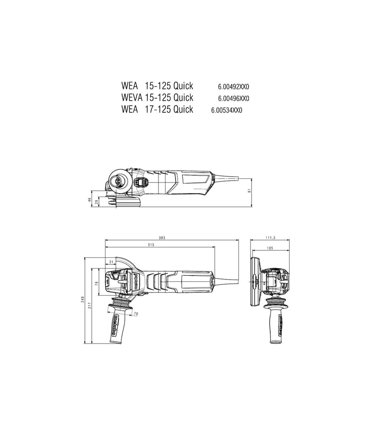 • Cambio del disco rápido, sin herramienta presionando un botón con el sistema M-Quick de Metabo