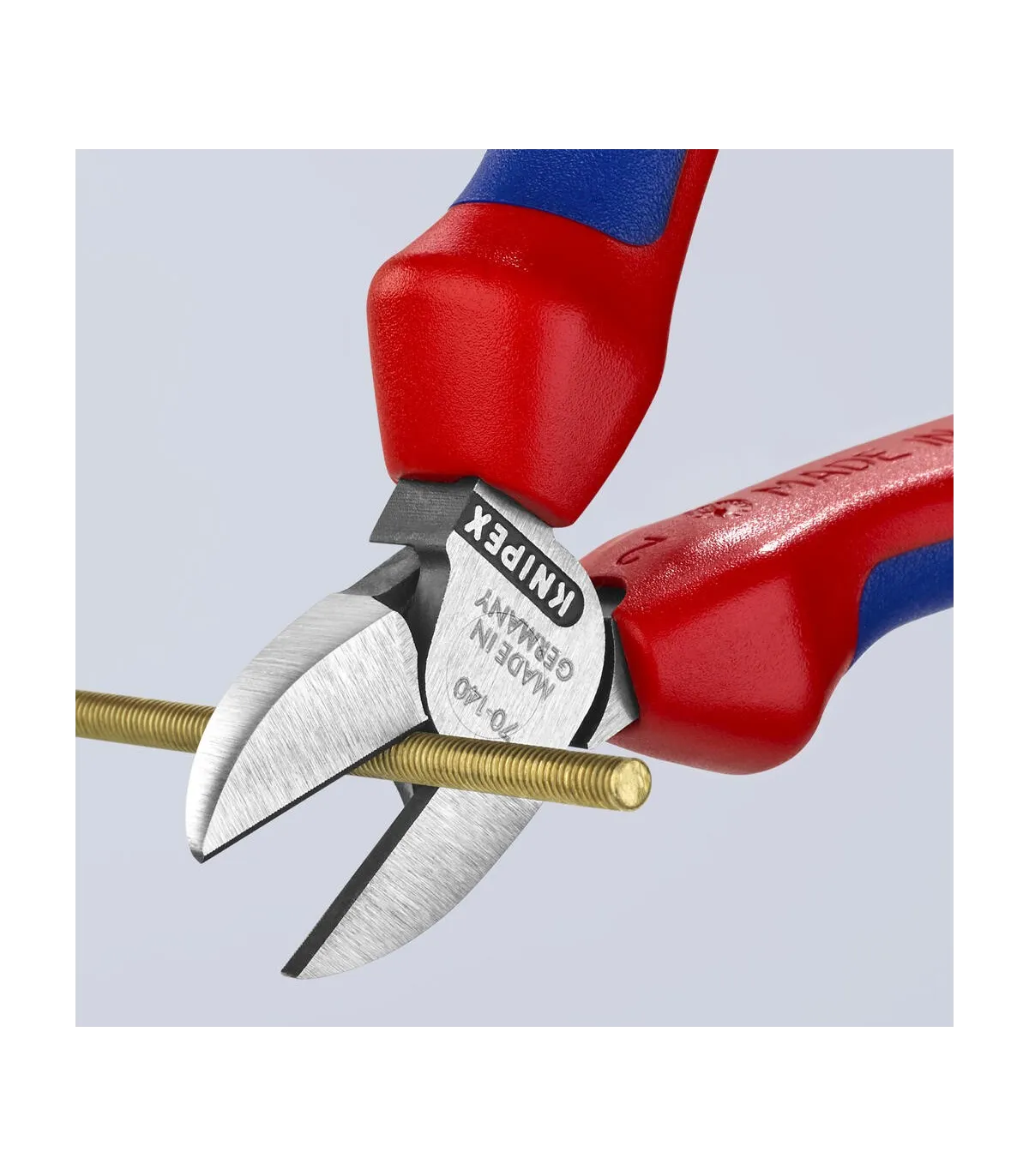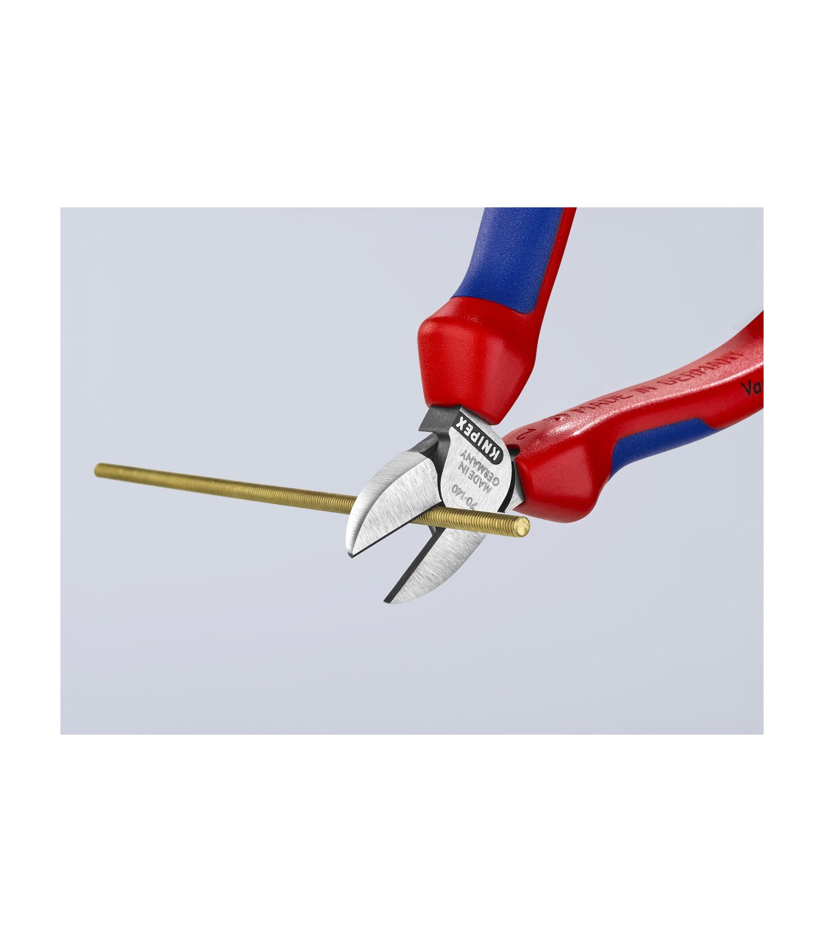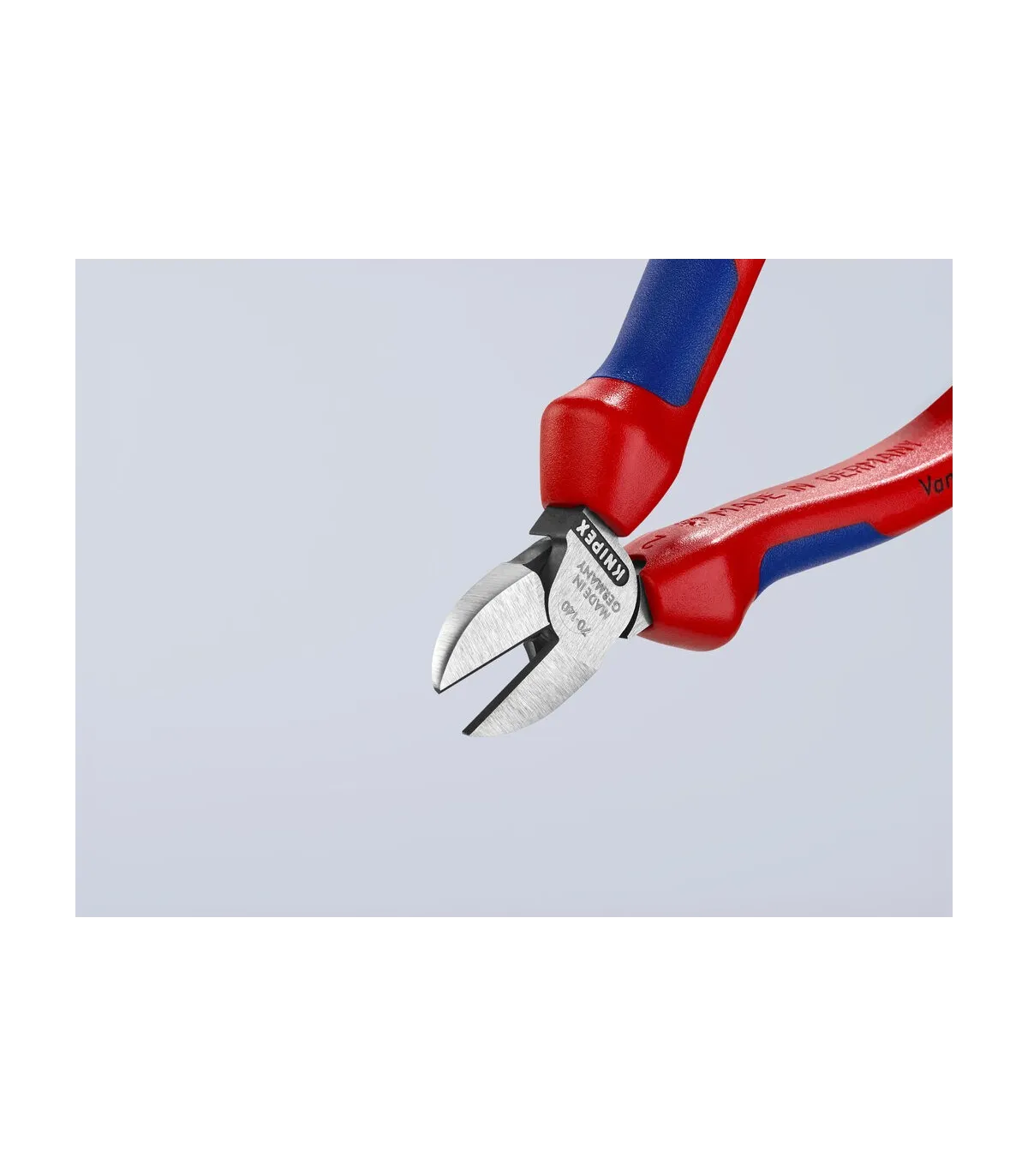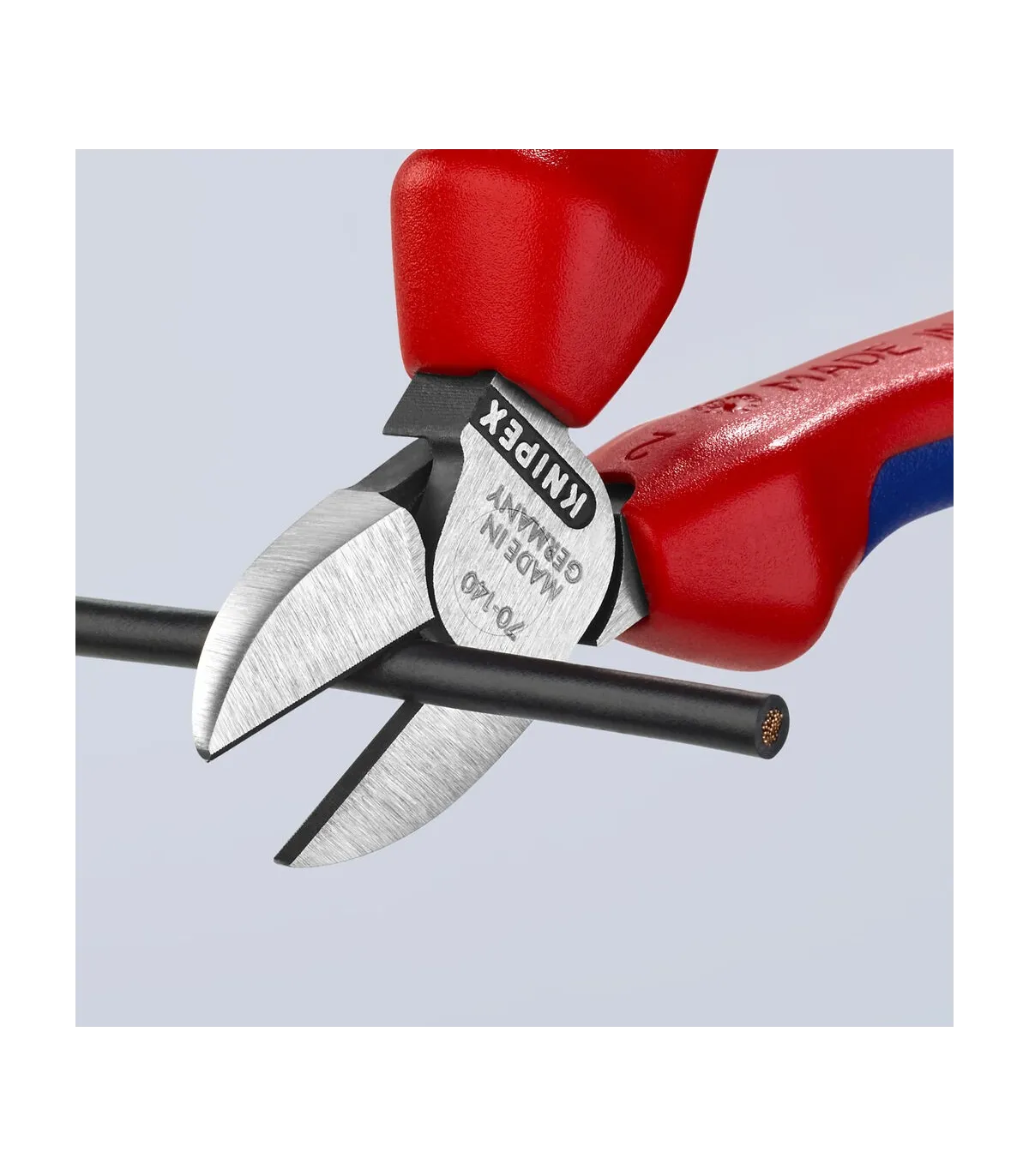 El alicate de corte diagonal indispensable para todo tipo de usos. Material de gran calidad y trabajo de precisión para una larga vida útil. Filos de corte de precisión para alambre blando y duro. Corte limpio de de alambres finos de cobre, también en las puntas. Filos de corte templados adicionalmente por inducción; dureza aprox. de los filos 62 HRC. Forma de cabeza estrecha para usar en espacios reducidos. Con bisel.