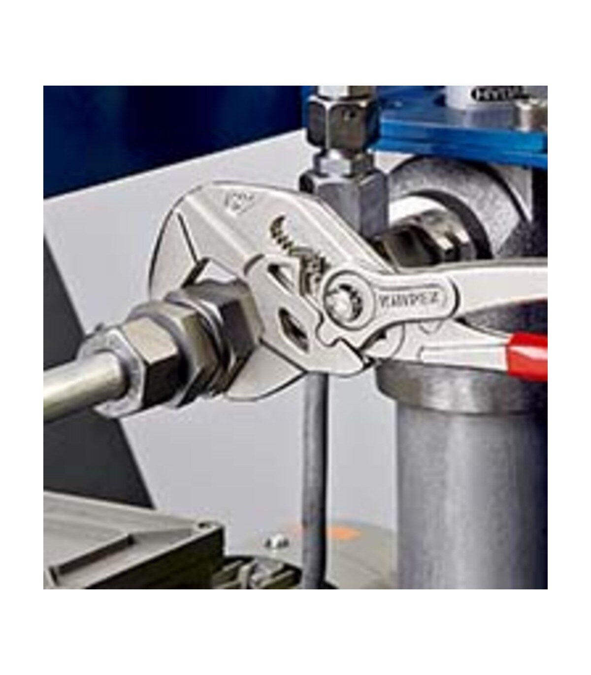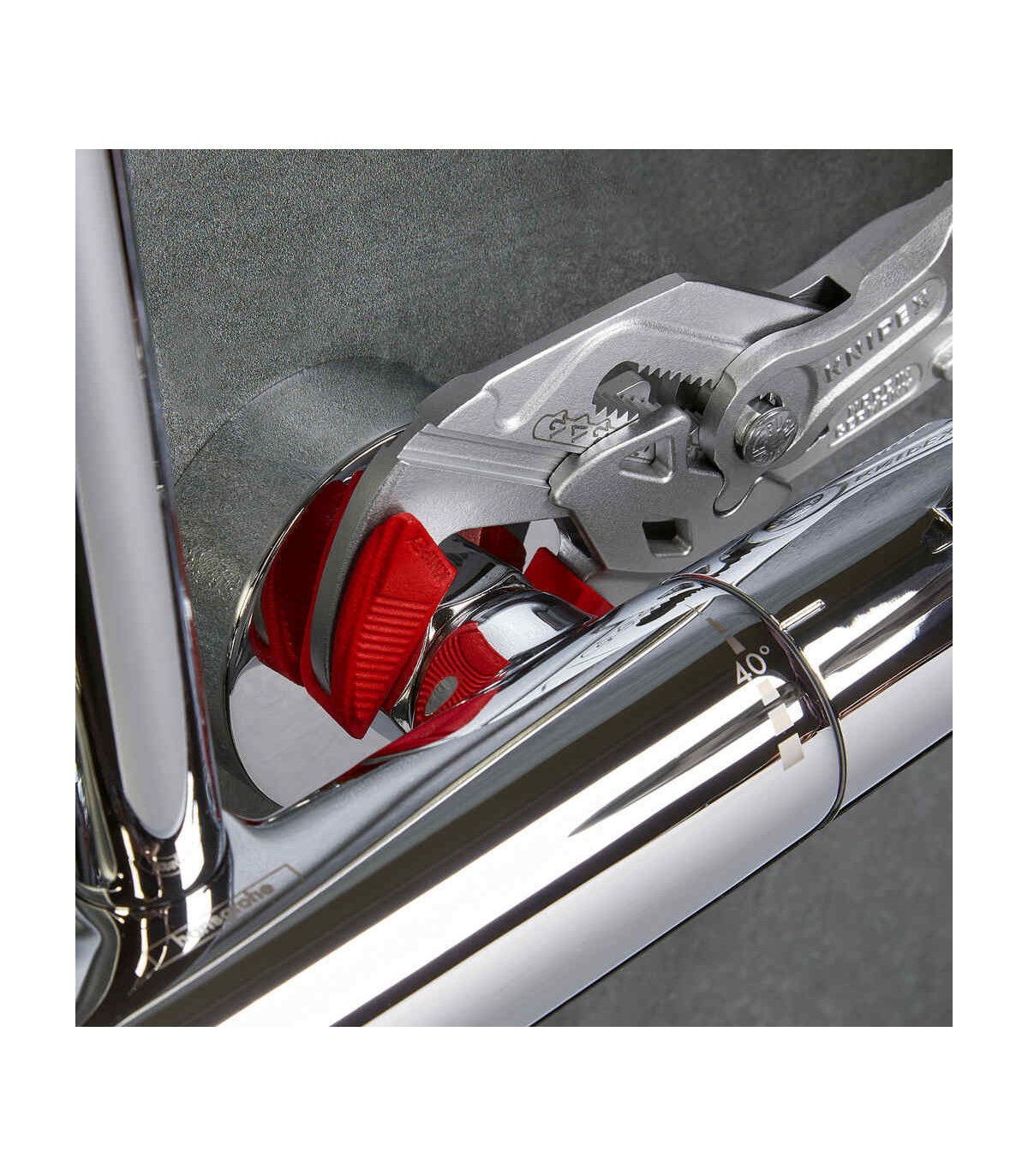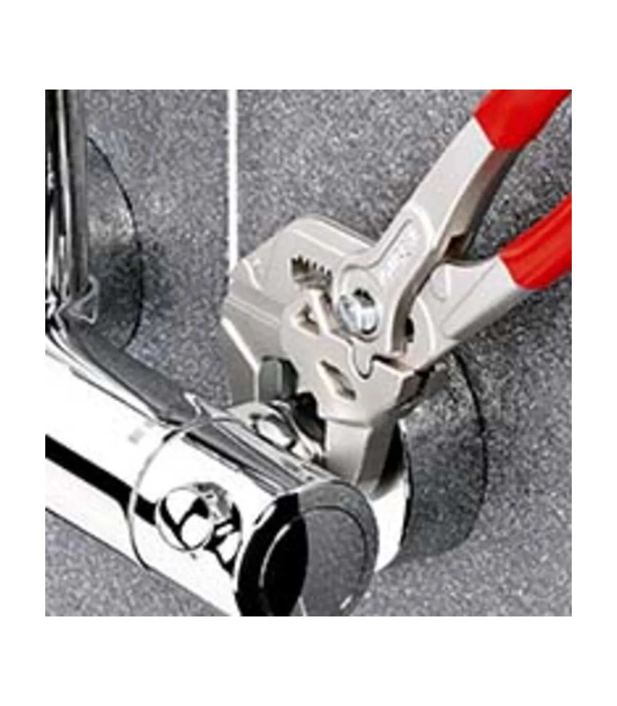 Sustituye a un juego completo de llaves de tuercas, tanto en métrica como en pulgadas. Mordazas planas para el cuidadoso montaje de grifos con tratamiento superficial - ¡para trabajar directamente sobre cromo!. Muy adecuada también para agarrar, sujetar, prensar y doblar piezas a mecanizar. Ajuste perfecto a las caras de las tuercas evitando que estas se redondeen. Ajuste rápido mediante botón directamente en la pieza de trabajo. Articulación antideslizante con mordazas de agarre de ajuste perfecto. Agarre perfecto gracias a las mordazas paralelas; su diseño permite adaptarla a todos los anchos de boca hasta el máximo especificado. El accionamiento entre las mordazas posibilita el ajuste y la liberación rápida de uniones roscadas gracias al efecto carraca. La fuerza ejercida en los mangos se multiplica por 10 en las mordazas, gran capacidad de sujeción.