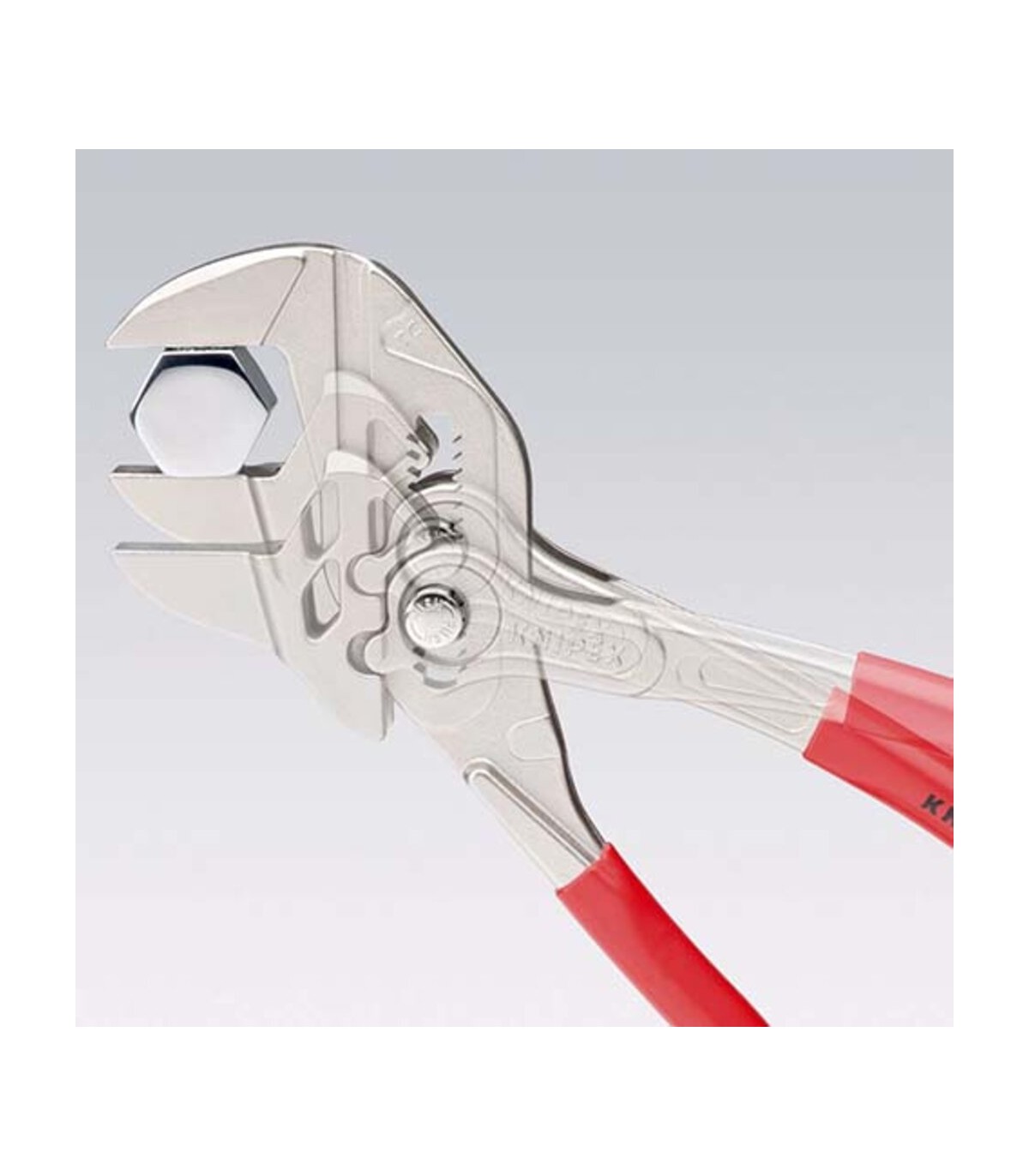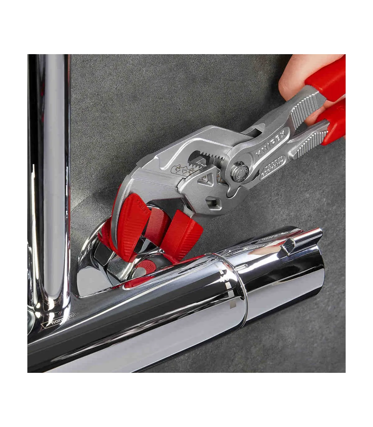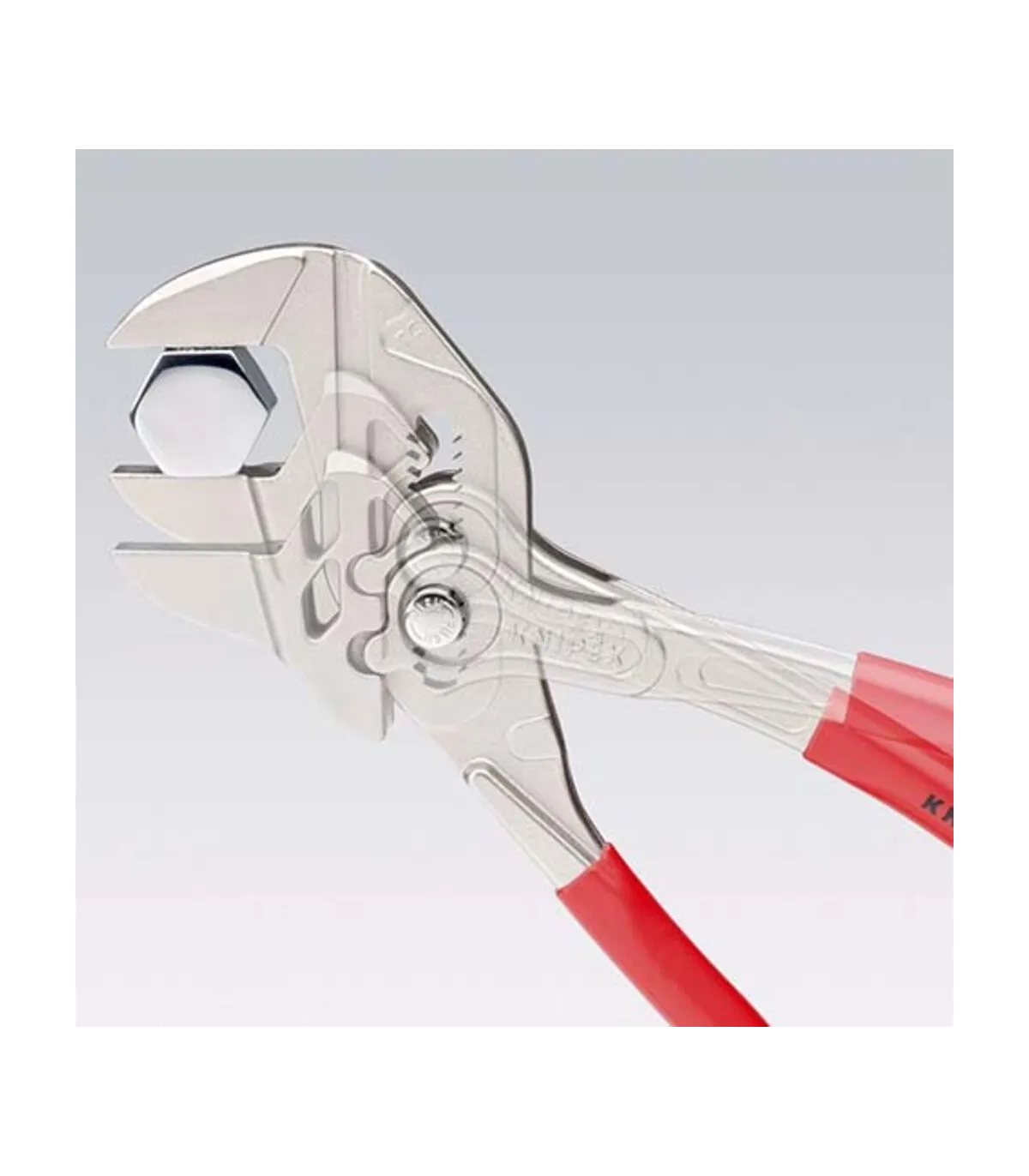 Sustituye a un juego completo de llaves de tuercas, tanto en métrica como en pulgadas. Mordazas planas para el cuidadoso montaje de grifos con tratamiento superficial - ¡para trabajar directamente sobre cromo!. Muy adecuada también para agarrar, sujetar, prensar y doblar piezas a mecanizar. Ajuste perfecto a las caras de las tuercas evitando que estas se redondeen. Ajuste rápido mediante botón directamente en la pieza de trabajo. Articulación antideslizante con mordazas de agarre de ajuste perfecto. Agarre perfecto gracias a las mordazas paralelas; su diseño permite adaptarla a todos los anchos de boca hasta el máximo especificado. El accionamiento entre las mordazas posibilita el ajuste y la liberación rápida de uniones roscadas gracias al efecto carraca. La fuerza ejercida en los mangos se multiplica por 10 en las mordazas, gran capacidad de sujeción.