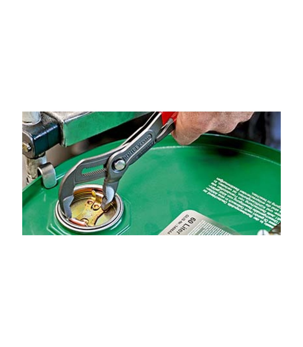 Ajuste automático mediante pulsación de botón directamente en la pieza de trabajo. Ajuste preciso para adaptarse óptimamente a diversos tamaños de piezas y para una posición ergonómica del mango. Auto-retención en tuberías y tuercas, agarre perfecto a la pieza con el mínimo esfuerzo. Mordazas con dientes adicionalmente templados, dureza aprox. de los dientes 61 HRC: poco desgaste y gran seguridad en el agarre. Articulación machihembrada: gran estabilidad por la doble guía. Recepción segura del perno de articulación: imposible desajustar involuntariamente. Un retén protector evita lesiones por pellizcos.