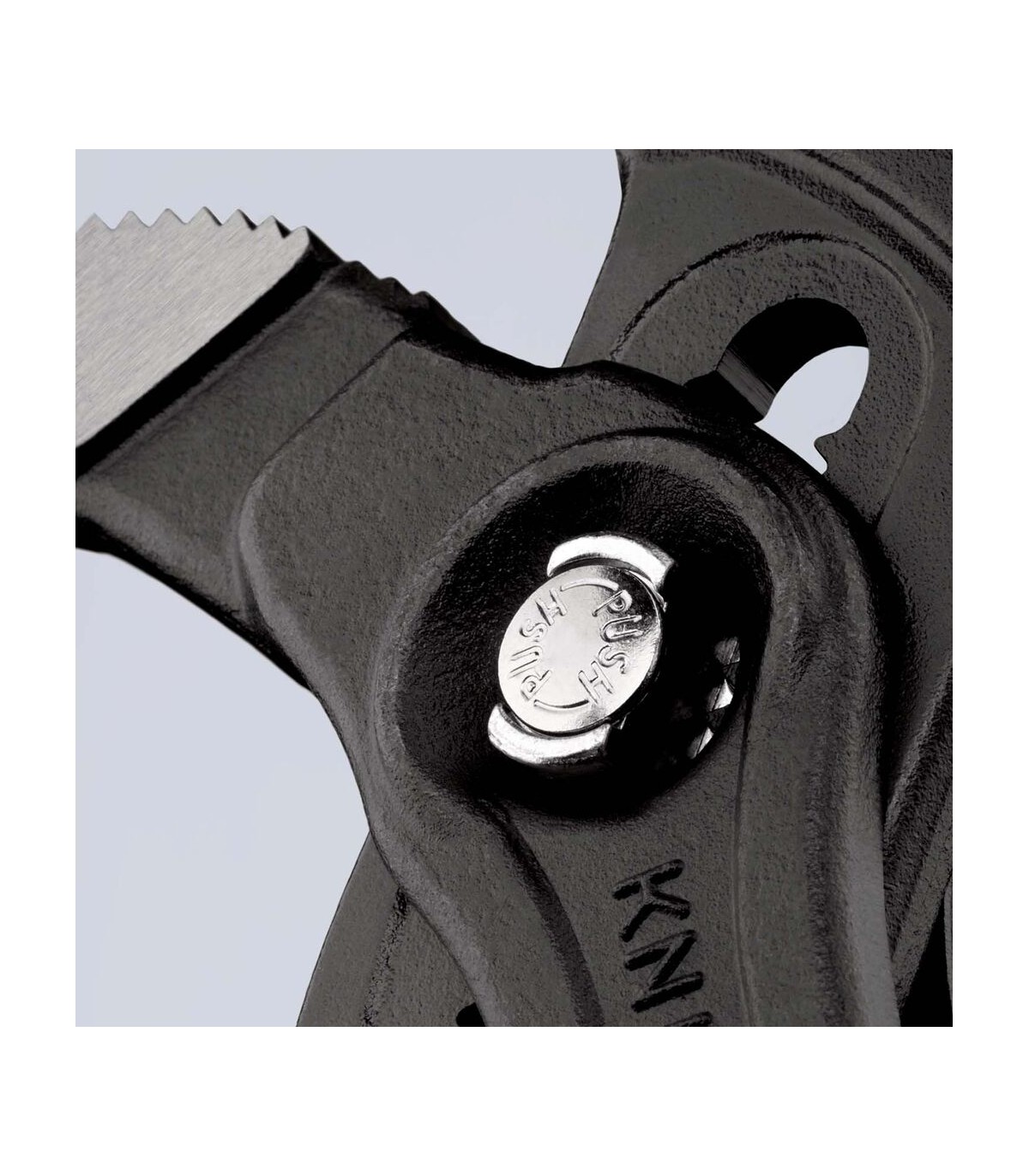 Mayor abertura de agarre, pero mucho menor peso que las llaves para tubos comparables. Ajuste rápido mediante pulsación de botón directamente sobre la pieza, sin deslizamiento fortuito de la articulación. Ajuste preciso para adaptarse óptimamente a diversos tamaños de piezas y para una posición ergonómica del mango. Auto-retención en tuberías y tuercas, agarre perfecto a la pieza con el mínimo esfuerzo. Mordazas con dientes adicionalmente templados, dureza aprox. de los dientes 61 HRC: poco desgaste y gran seguridad en el agarre. Articulación machihembrada: gran estabilidad por la doble guía. Un retén protector evita lesiones por pellizcos.