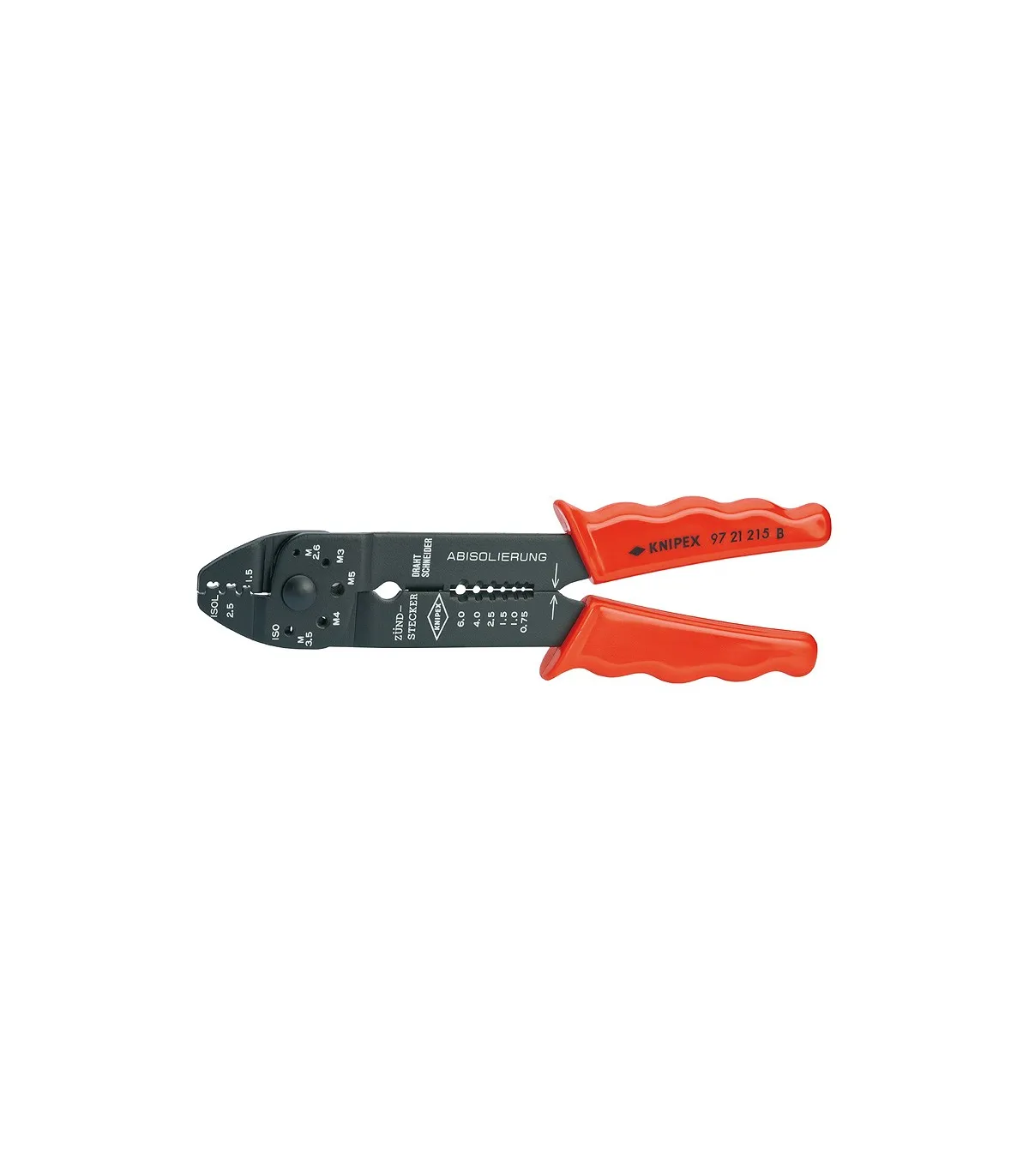 Para cortar y pelar cables, crimpar terminales anulares aislados y no aislados asi como conectores faston. Con perforaciones para cortar pasadores roscados de cobre y latón (M 2,6 / M 3,0 / M 3,5 / M 4,0 y M 5). Articulación atornillada para una elevada estabilidad y un movimiento uniforme.