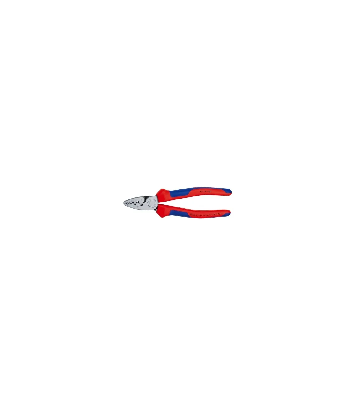 diseño ligero y esbelto. También como versión VDE. Fácil crimpado debido a la multiplicación optimizada. Para un crimpado de punteras huecas conforme a la norma DIN 46228 partes 1 + 4 de 0,25 - 16². Con mordaza en forma semicircular para lograr una unión especialmente ajustada entre la puntera y el conductor. 9 posiciones de crimpaje profundas y con superficies laterales cónicas.