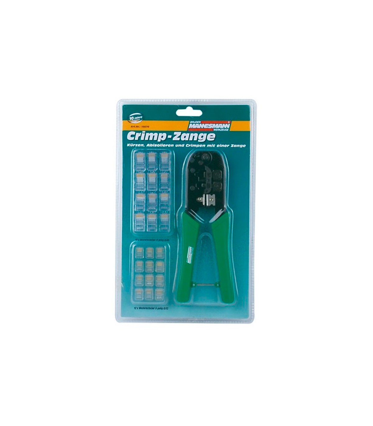 Herramienta profesional para cortar y pelar la cubierta de cables telefónicos planos sin blindaje. Para crimpar conectores Western de 6 y 8 polos tipo RJ 11/12 (ancho 9,65) y RJ 45 (ancho 11,68); diseño largo. Proceso de crimpado preciso gracias al crimpado en paralelo. Proceso de crimpado de gran calidad gracias al sistema de bloqueo con mecanismo de liberación automática. Con guillotina y cuchilla pelacables para cables planos de 6 y 12 de longitud. Con dispositivo adicional para pelar cables redondos.