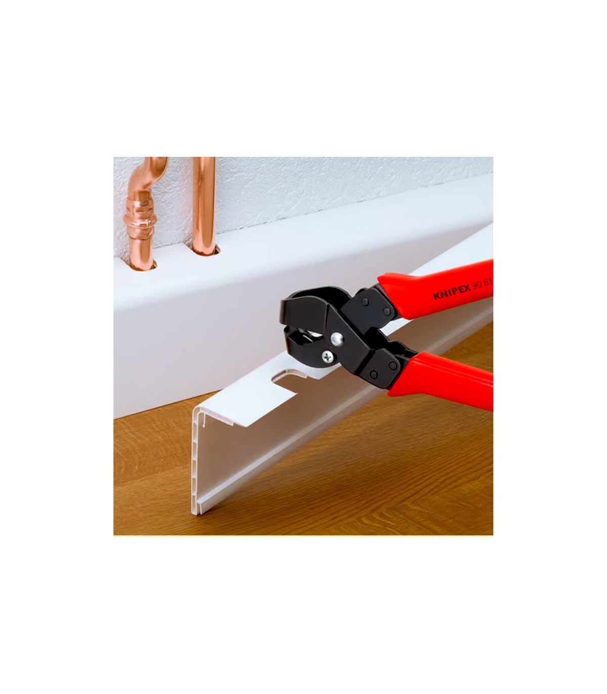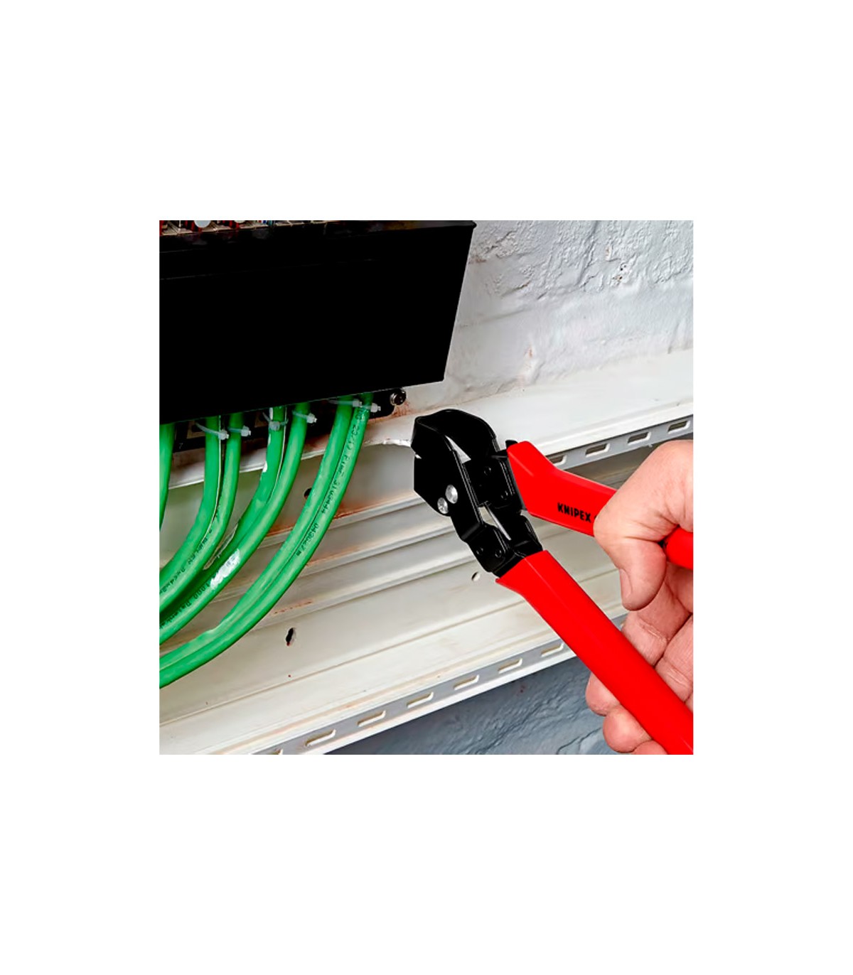 Alicate especial para cortes en "U" en materiales plásticos, cajas protectoras para instalaciones eléctricas y sanitarias. Los cortes en "U" pueden ser alargados mediante cortes previos y adicionales. Cortes limpios sin rebabas, evitando trabajos adicionales. Fácil manejo. Con muelle y limitador de apertura y palanca de cierre.