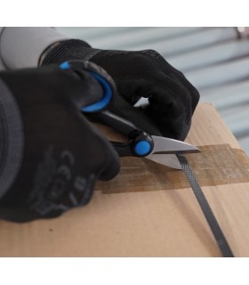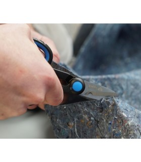 Filos de corte de precisión y afilados con dentado fino para un corte limpio y sin deslizamiento. Filo de corte con cortacables. Con portaherramientas de plástico. Mangos con fundas multicomponentes, reforzadas con fibras de vidrio. Tijeras universales para electricistas. Filos de corte de acero inoxidable, dureza de los filos de corte 56 HRC. cartulina autoservicio/blíster.