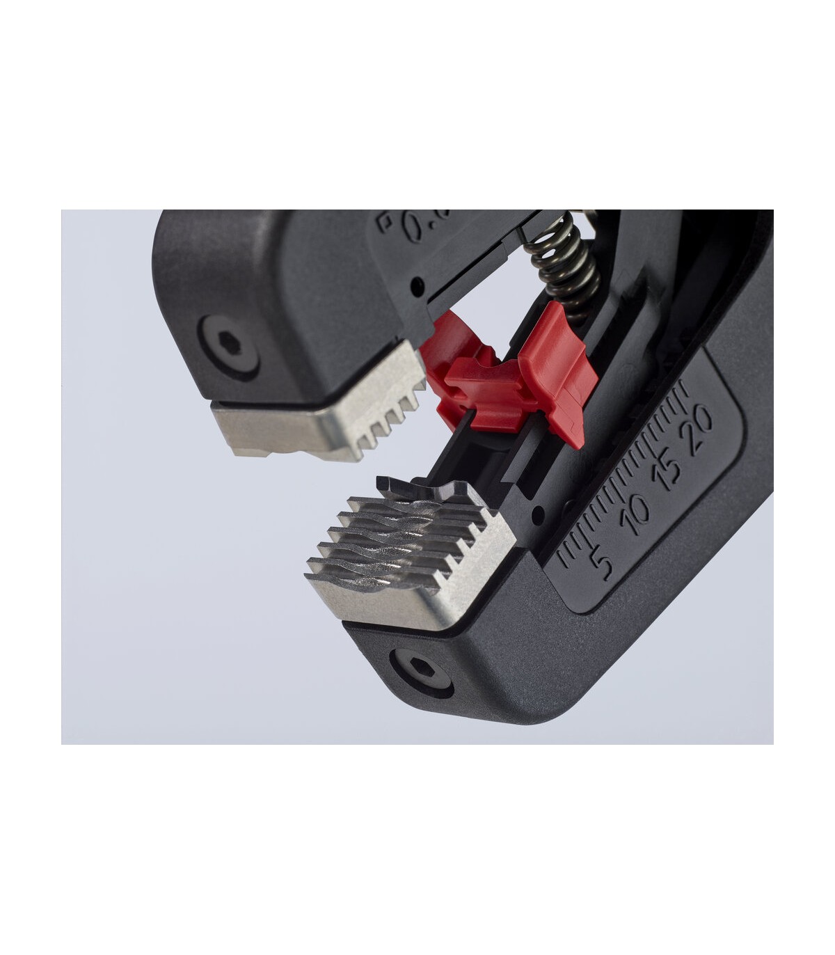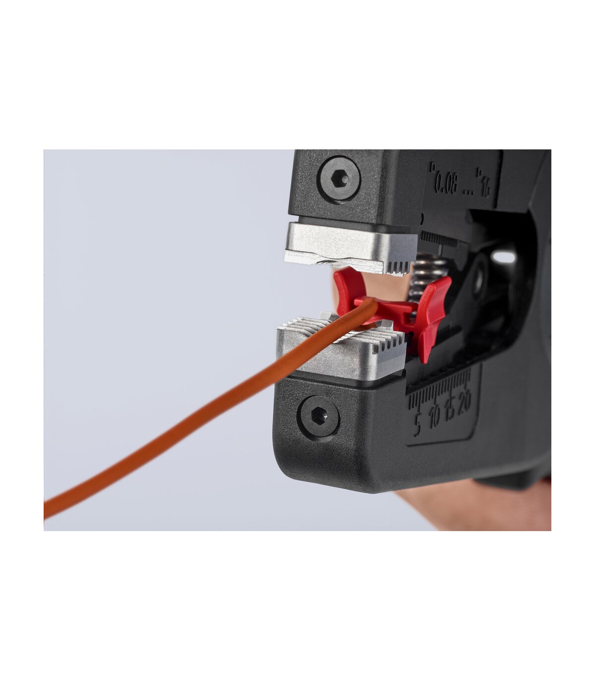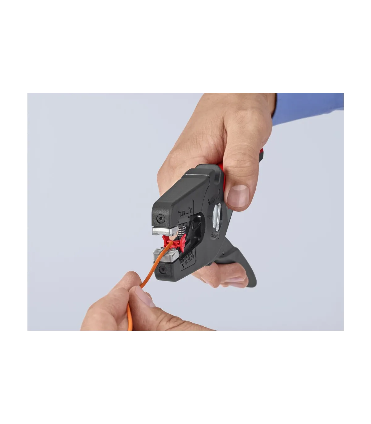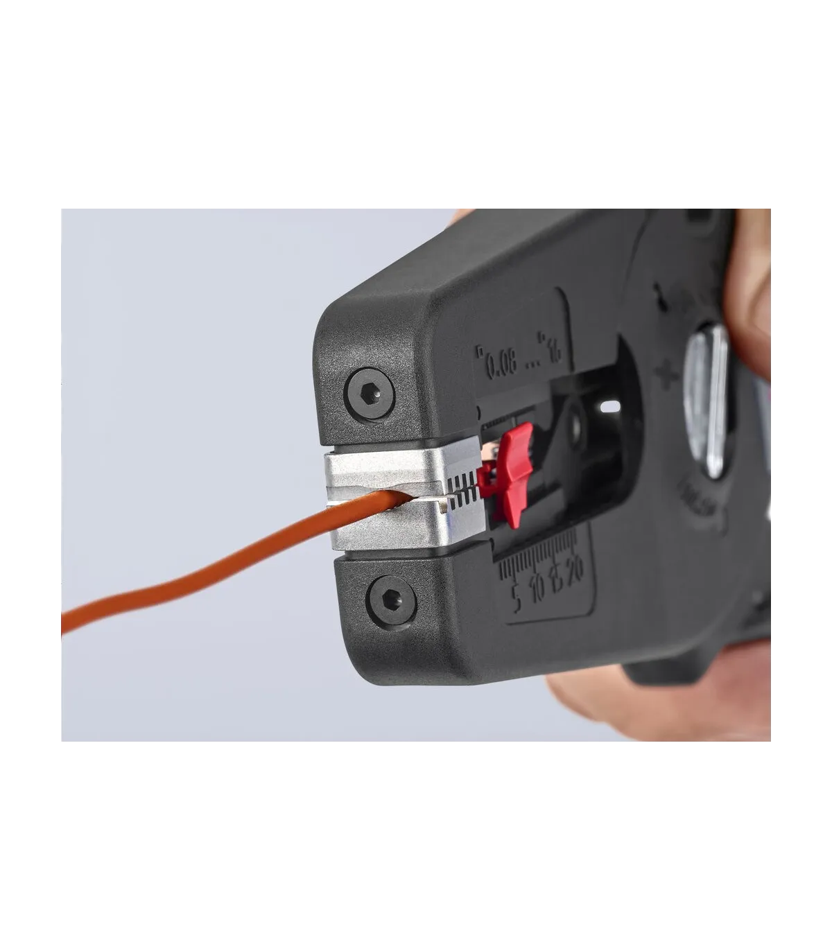 Pelado simple y preciso de cables finos y cables redondos con un rango de capacidad de 0,08 a 16² con un solo alicate. Buen agarre proporcionado gracias a las abrazaderas de sujeción metálicas acanaladas semicirculares; corte exacto mediante la cuchilla de pelado parabólica. Un automatismo patentado regula la profundidad del corte; el punto neutro del automatismo se puede ajustar en pasos precisos en condiciones de funcionamiento especiales (material de aislamiento, temperatura). Con tope longitudinal ajustable para trabajos repetitivos. Área de inscripción para personalización. Cómodo manejo gracias al mango ergonómico de dos componentes. Con anilla de fijación, adecuado para accesorios de KNIPEX Tethered Tools. Casete de cuchillas de sustitución sencilla.