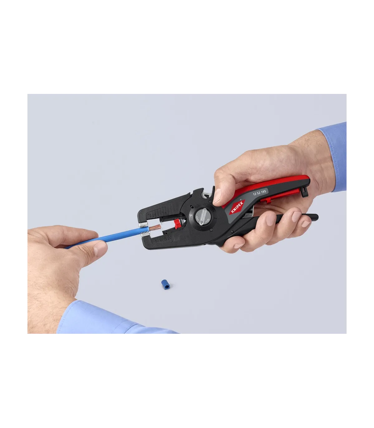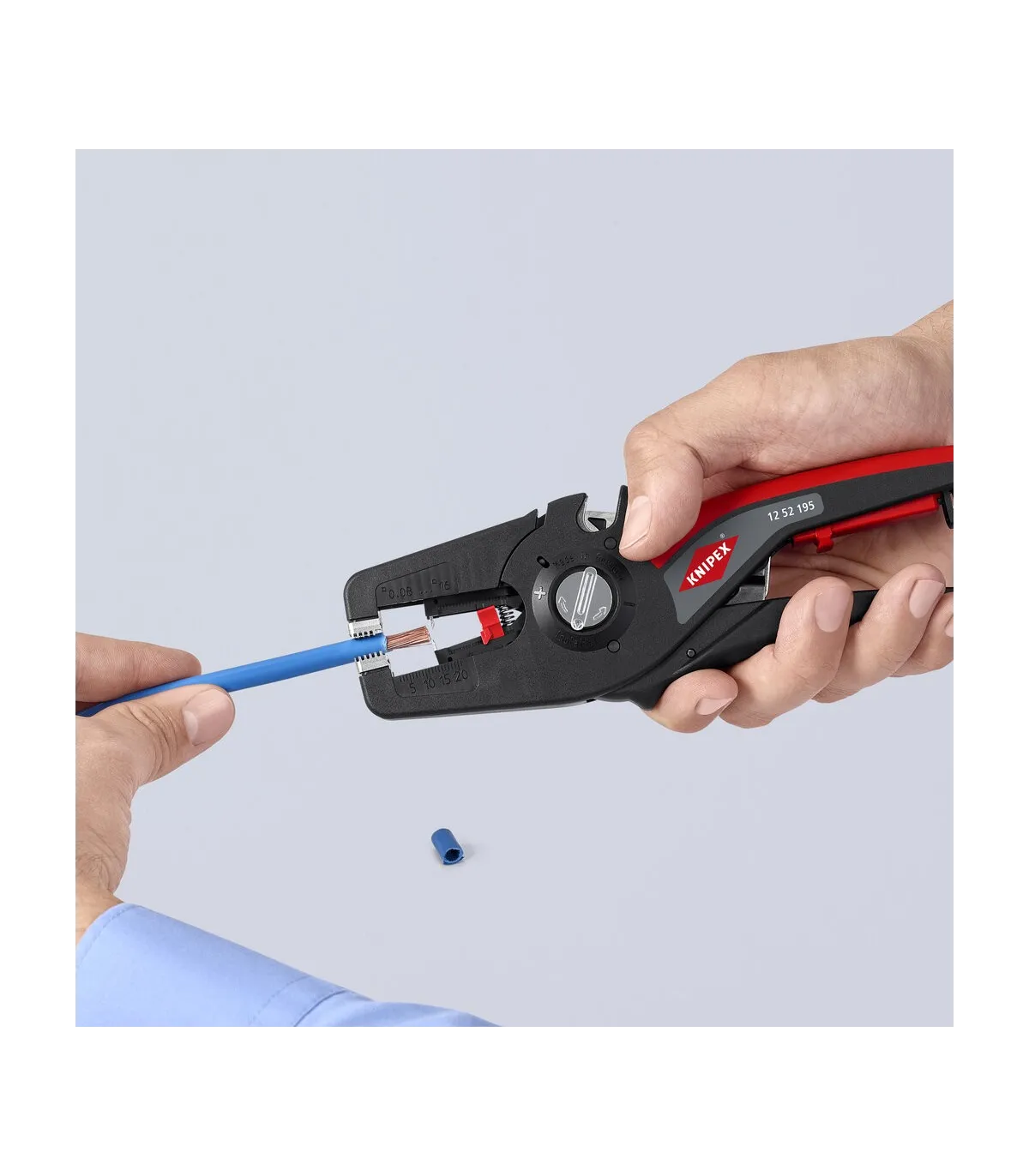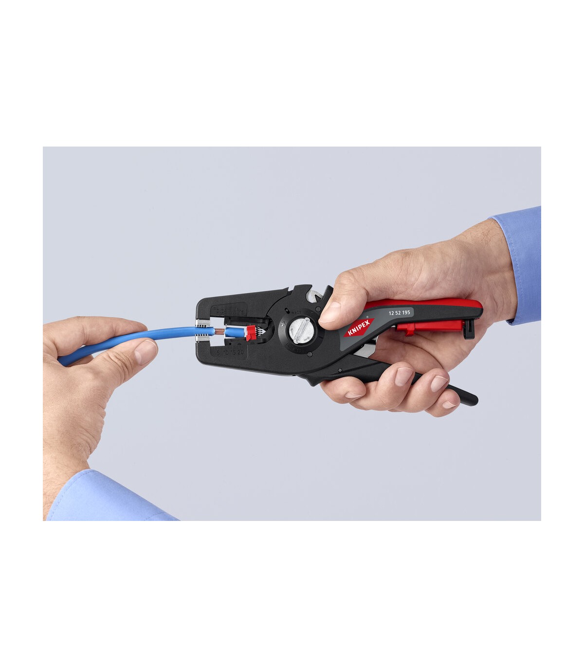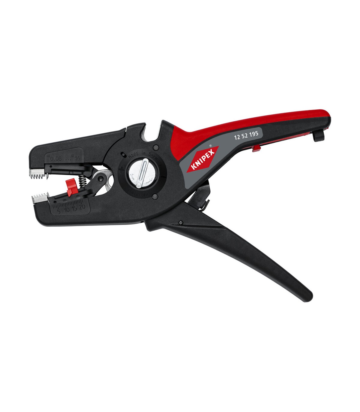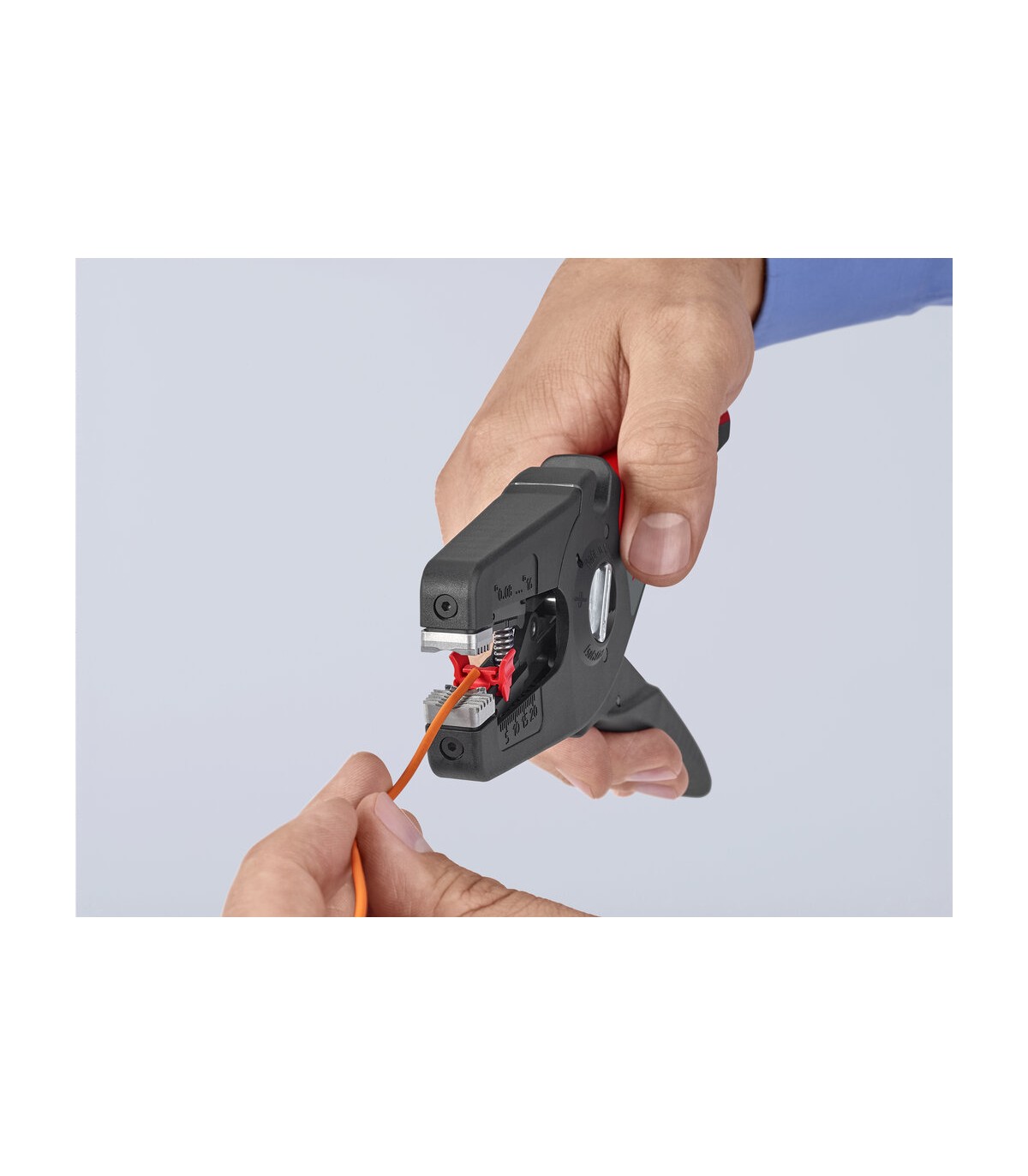 Pelado simple y preciso de cables finos y cables redondos con un rango de capacidad de 0,08 a 16² con un solo alicate. Buen agarre proporcionado gracias a las abrazaderas de sujeción metálicas acanaladas semicirculares; corte exacto mediante la cuchilla de pelado parabólica. Un automatismo patentado regula la profundidad del corte; el punto neutro del automatismo se puede ajustar en pasos precisos en condiciones de funcionamiento especiales (material de aislamiento, temperatura). Con tope longitudinal ajustable para trabajos repetitivos. Área de inscripción para personalización. Cómodo manejo gracias al mango ergonómico de dos componentes. Con anilla de fijación, adecuado para accesorios de KNIPEX Tethered Tools. Casete de cuchillas de sustitución sencilla.