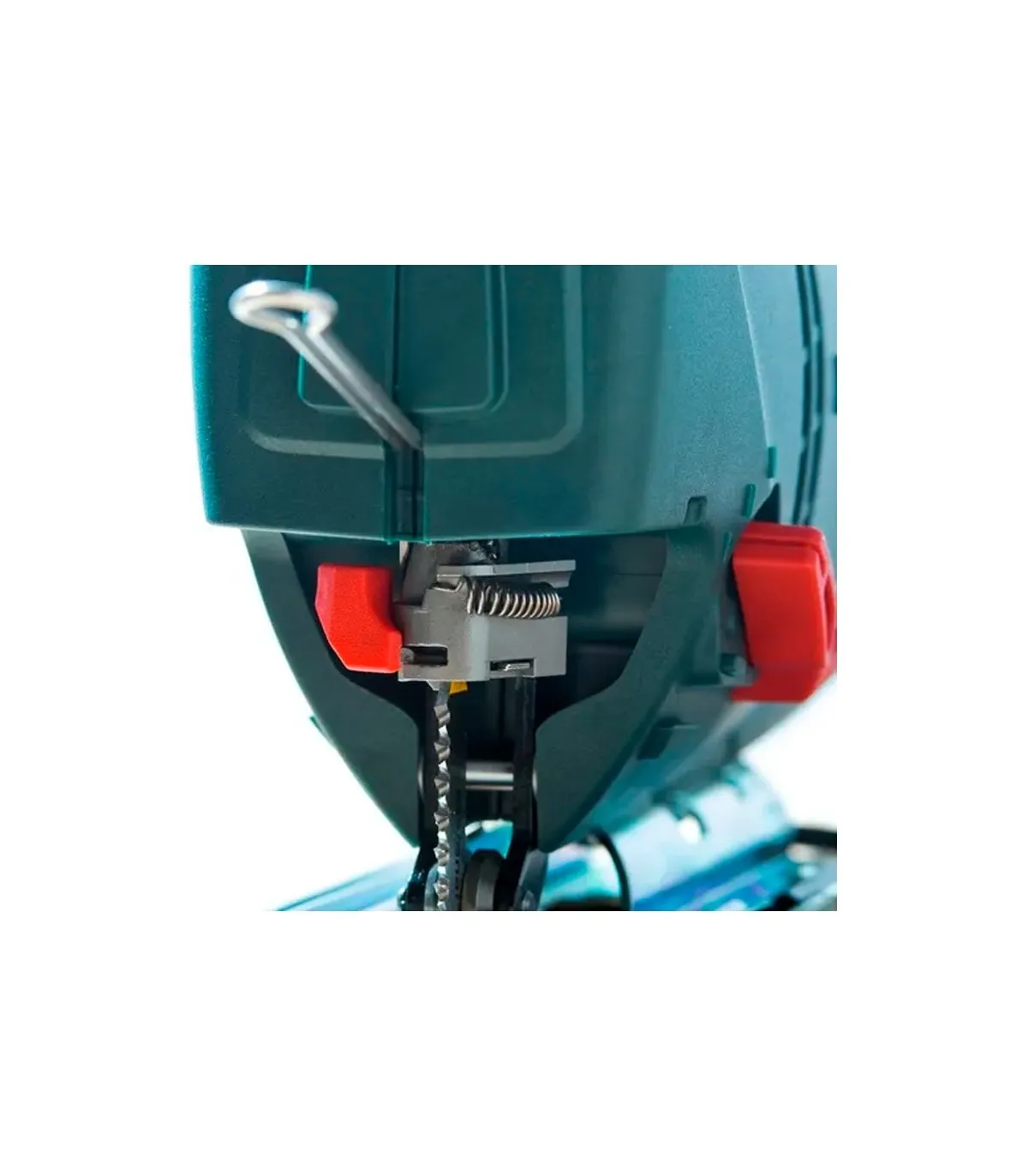 Quick de Metabo para cambiar la hoja de sierra sin herramienta|Guía de la hoja de sierra baja, para cortes exactos|Abrazadera con superficie Softgrip antideslizante|La función de soplado de virutas conectable proporciona una visibilidad libre del lugar de corte|Electrónica Vario (V) para trabajar con números de carreras adecuadas al material|Posibilidad de aspiración gracias a la conexión de aspiradores universales|Carril guía y dispositivo guía suministrables como accesorios