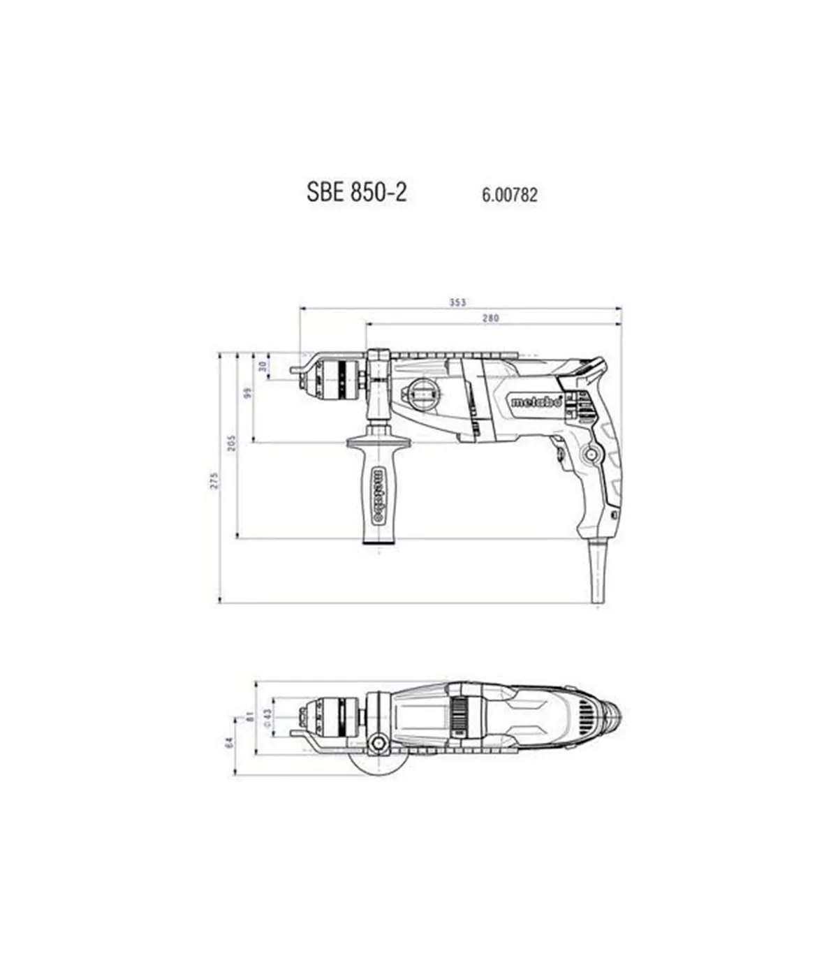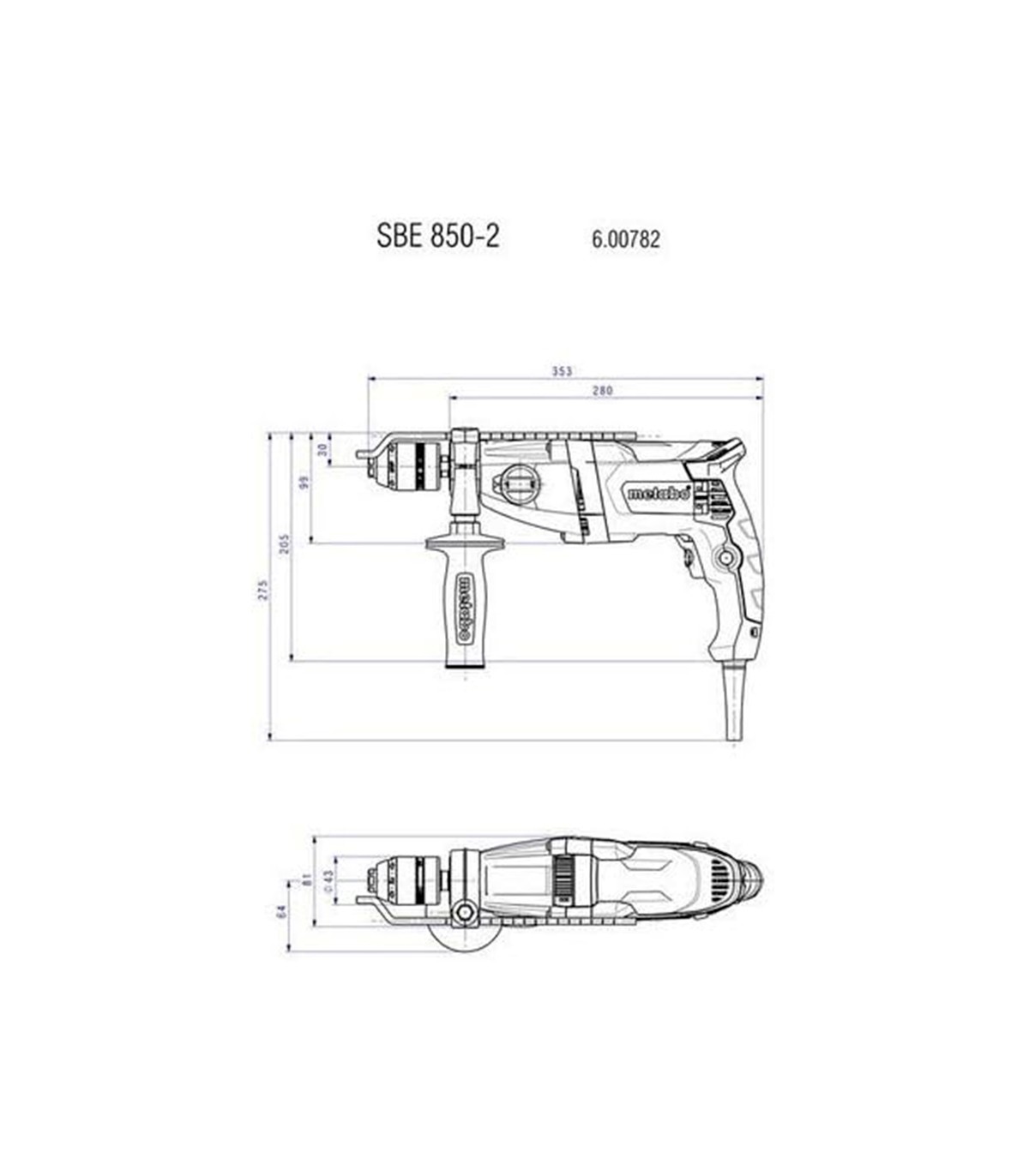TALADRO PERCUTOR METABO SBE850-2 ELECTR. 2 VELOC.