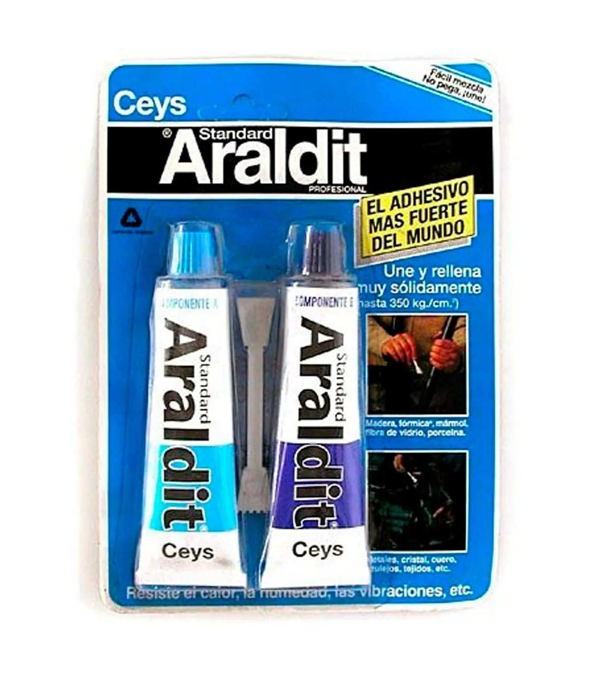 Adhesivo epoxi de dos componentes, una resina y un endurecedor, que reaccionan al mezclarse. Es el adhesivo recomendado para todo tipo de uniones de gran resistencia.