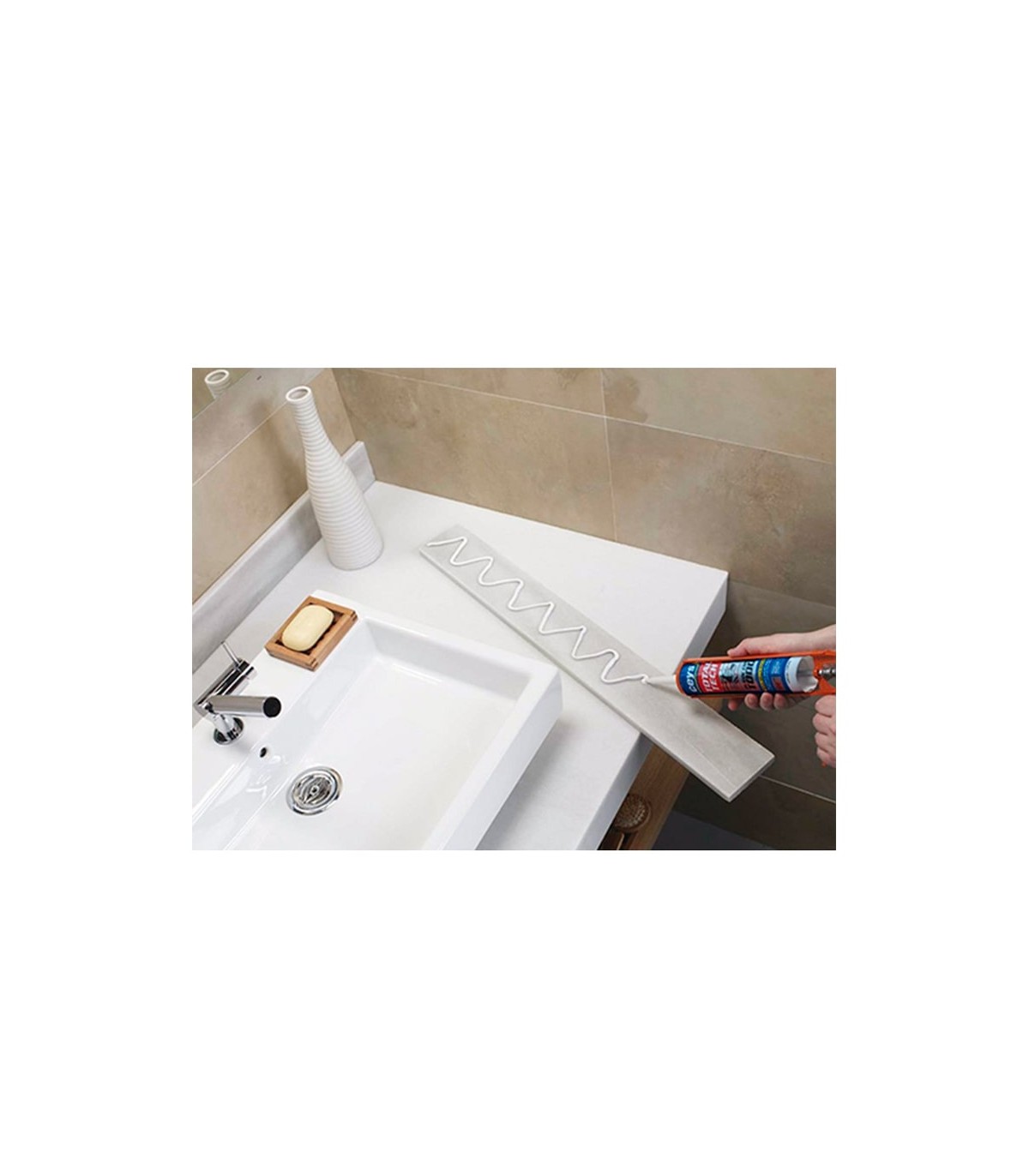 3. COLOCAR el cartucho en la pistola y APLICAR: Como adhesivo: aplicar sobre una de las superficies y unir presionando. Como sellador: aplicar un cordón y alisar con el dedo enjabonado.
