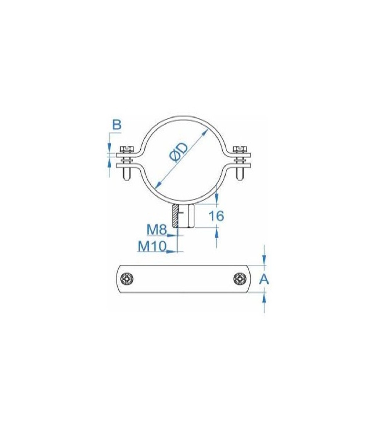 ABRAZADERA REFORZADA ZINCADA M.8+M10 Ø 28mm.