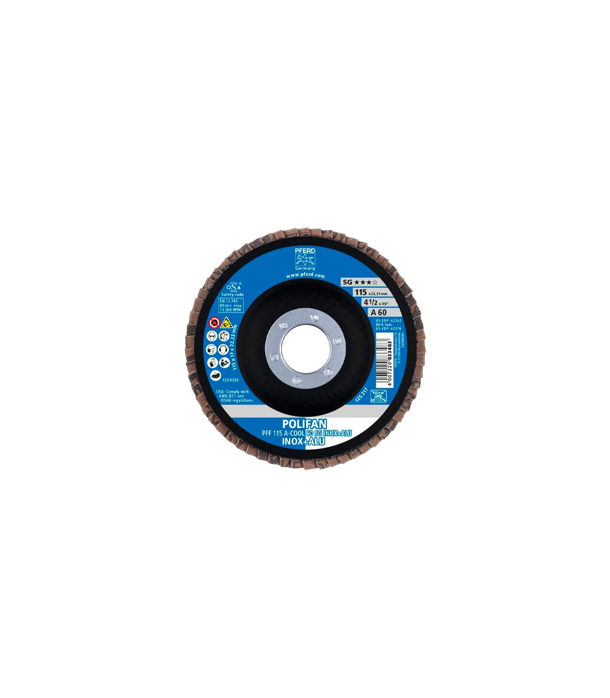 "Herramienta profesional para trabajos de lijado con alta calidad de superficie y mínima carga térmica. Ejecución PFERD con amolado especialmente frío en materiales malos conductores del calor. Abrasivo: Corindón y refrigerante; Materiales: INOX, aluminio y metales no férricos; Aplicación: Cordones de soldadura y amolado de superficies frío."