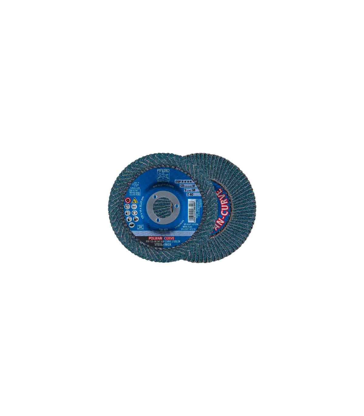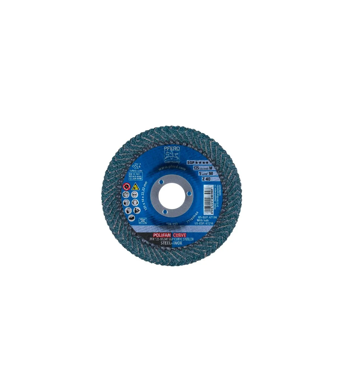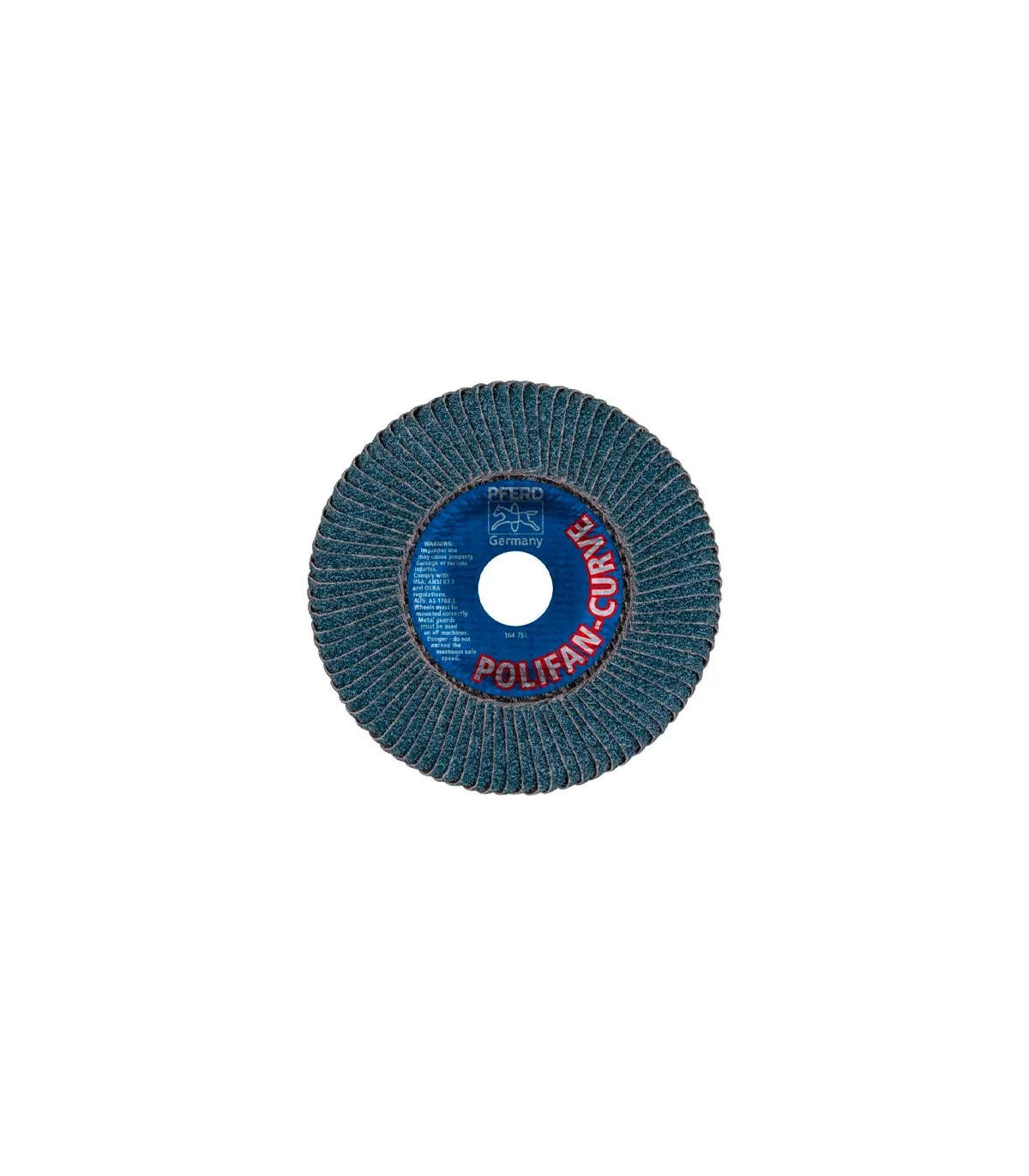 "POLIFAN® CURVE es una innovación de PFERD para el trabajo en puntos de difícil acceso. La original forma radial (PFR) ofrece con la especial disposición de las láminas lijadoras ventajas convincentes en el mecanizado costoso y exigente de cordones en ángulo. Amolado rápido y agresivo con elevada capacidad de arranque y consecuente ahorro de costes de mano de obra. Rectificado preciso y óptimo de cordones en ángulo. Estabilidad de forma para resultados de trabajo de gran calidad. Excelente duración en el mecanizado de cordones en ángulo. Aprovechamiento óptimo del material abrasivo en el radio. Abrasivo: Corindón de circonio Z; Materiales: Acero y acero fino (INOX); Aplicación: Amolado de cordones en garganta, achaflanar y desbarbar."