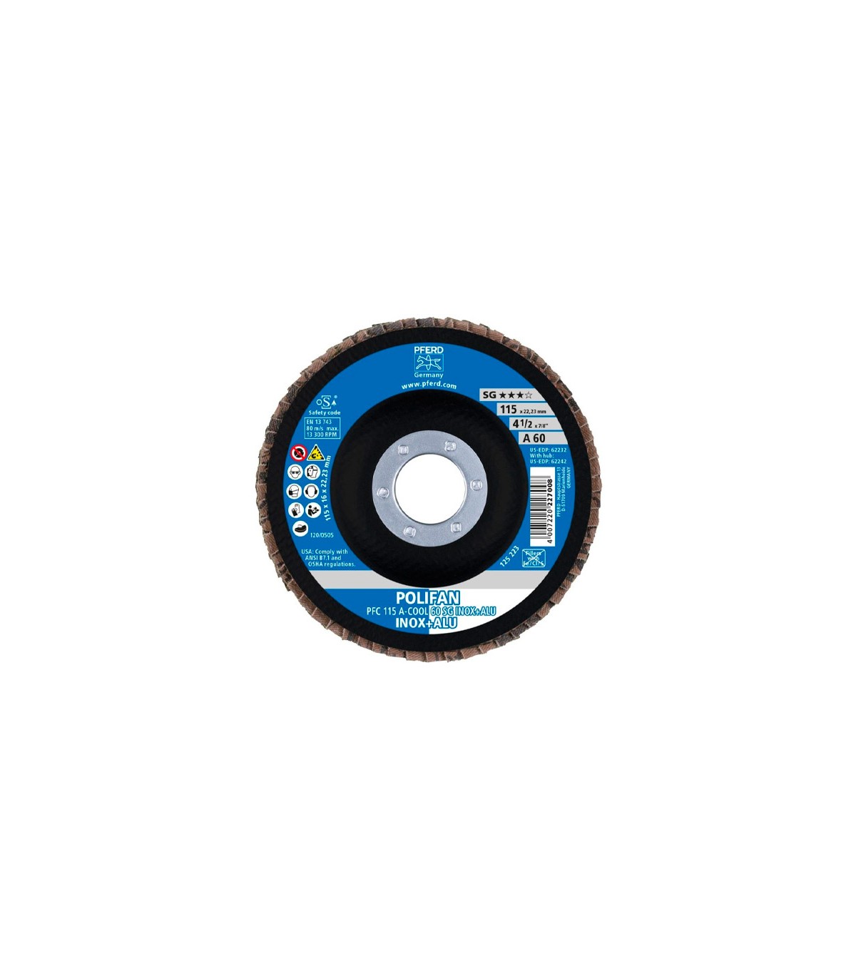 "Herramienta profesional para trabajos de lijado con alta calidad de superficie y mínima carga térmica. Ejecución PFERD con amolado especialmente frío en materiales malos conductores del calor. Abrasivo: Corindón y refrigerante; Materiales: INOX, aluminio y metales no férricos; Aplicación: Cordones de soldadura y amolado de superficies frío."