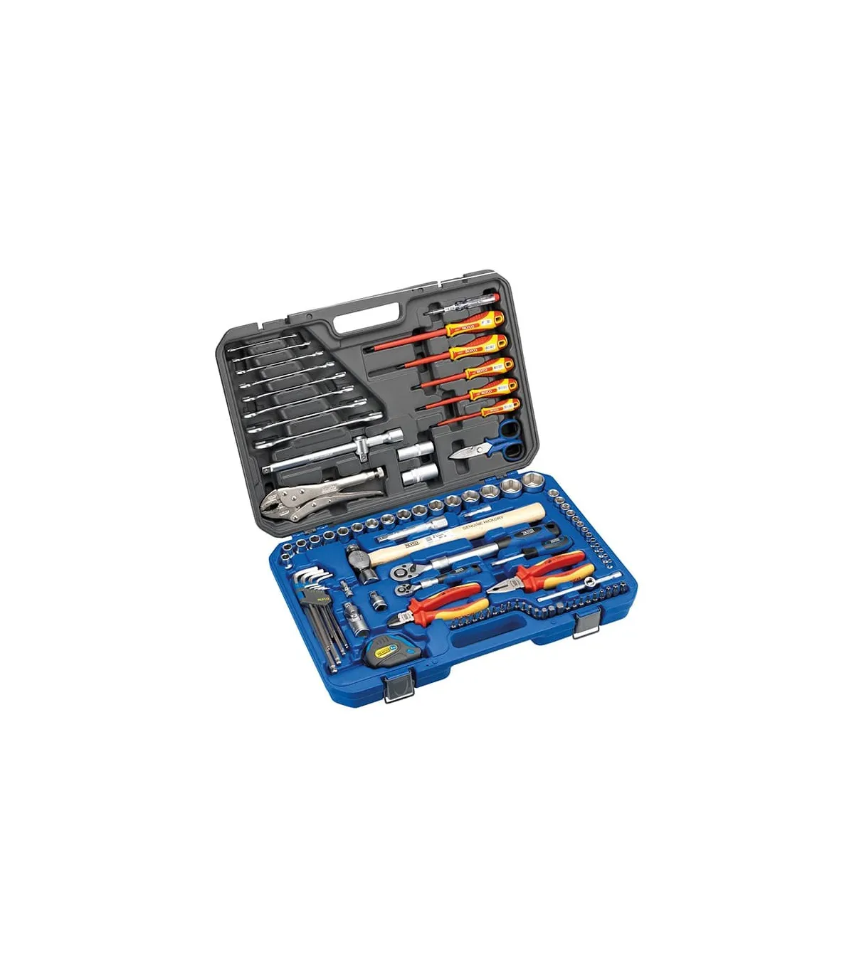 Juego combinado en maletín de plastico que facilita su almacenamiento y transporte. Por el cumplimiento de las normas DIN de producto es útil tanto para la industria, montadores, personal de mantenimiento, etc.