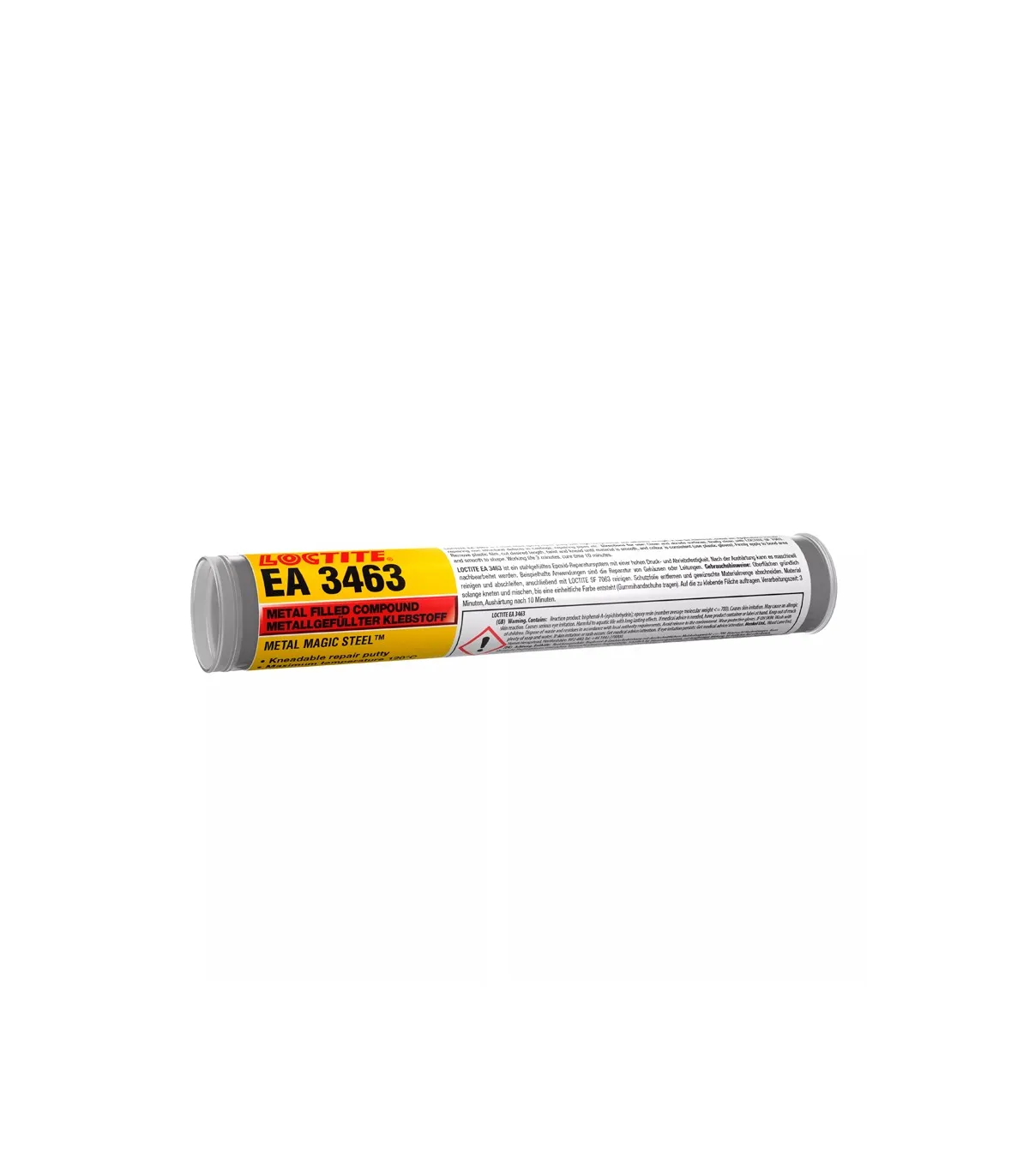 LOCTITE 3463 es un versátil epoxi bicomponente con carga de acero para reparaciones. Se aplica como una masilla y cuando está completamente curado presenta alta resistencia a la compresión y buena adhesión a la mayoría de las superficies. Este producto para las fugas en tuberías y tanques y repara pequeños defectos en alojamientos y orificios mecanizados de entrada de tornillos y espárragos, bloque motor, etc. Este producto se utiliza habitualmente en aplicaciones con un intervalo térmico operativo de entre -30 °C a +121 °C.Barrita amasable cargada con aceroIntervalo térmico operativo entre -30 °C to +120 °CPara reparaciones de emergencia de depósitos, tubos y piezas de fundición