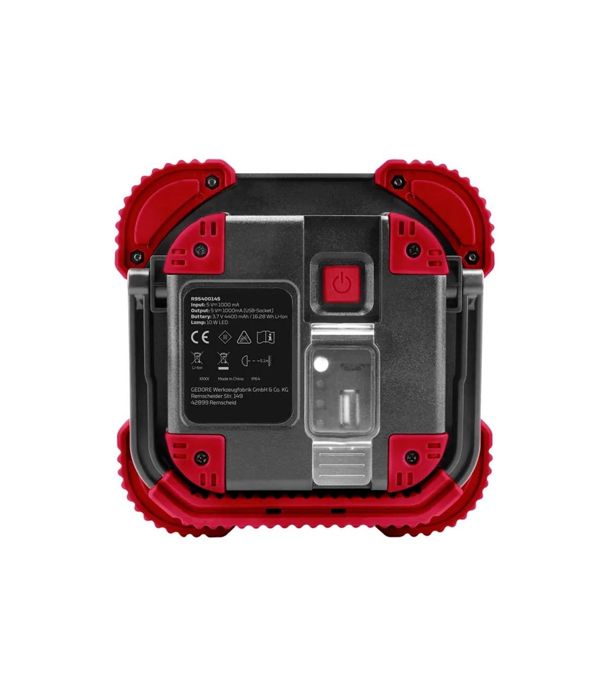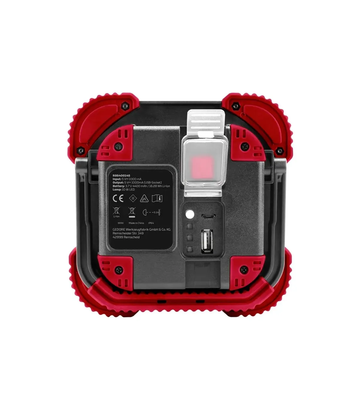 dispositivos externos. Batería de 3,7 V y 4400 mAh. Foco de 10W LED y 1400 lúmenes