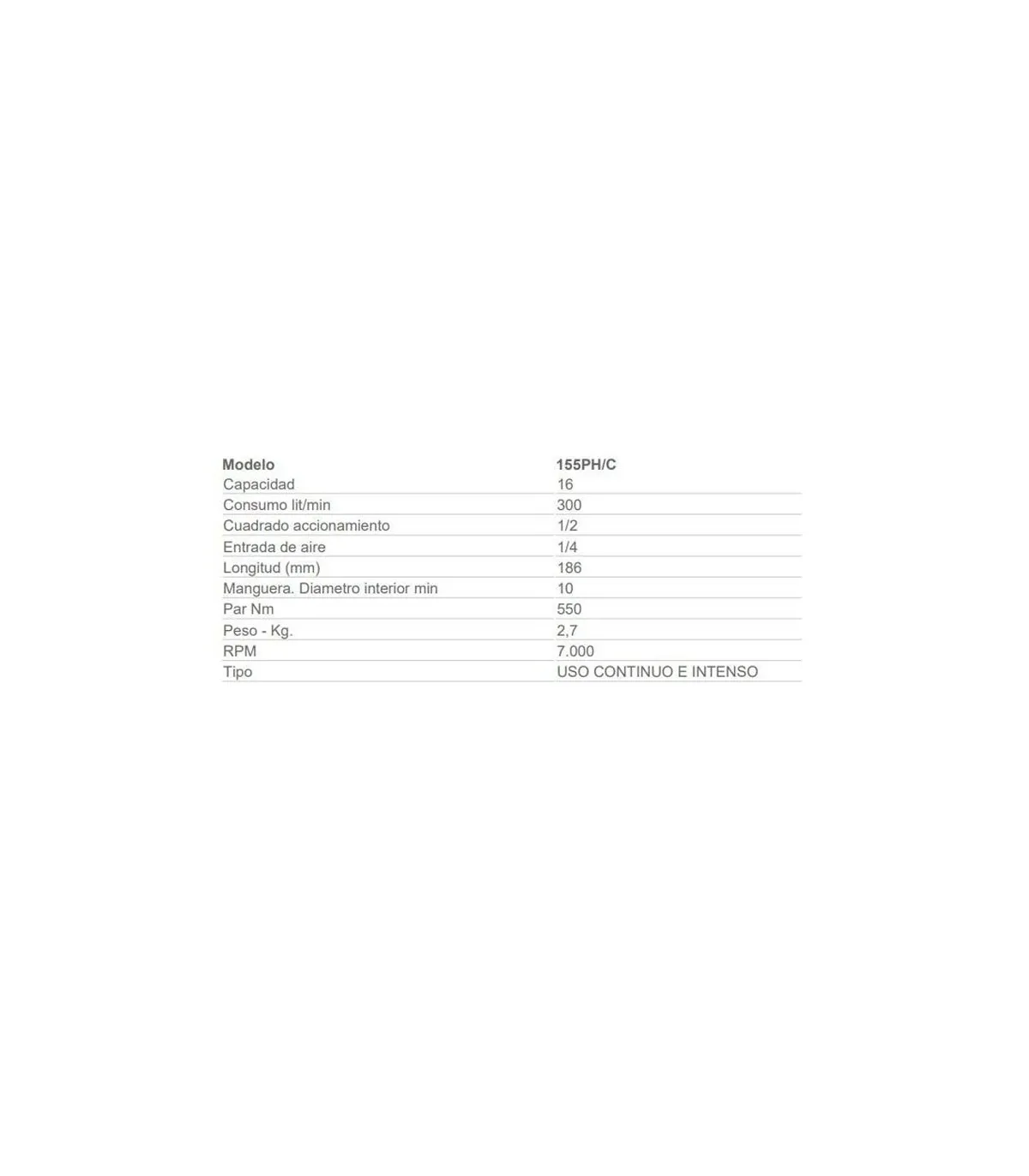 LLAVE PISTOLA IMPACTO NEUM. 155-PH 1/2" 55KgM