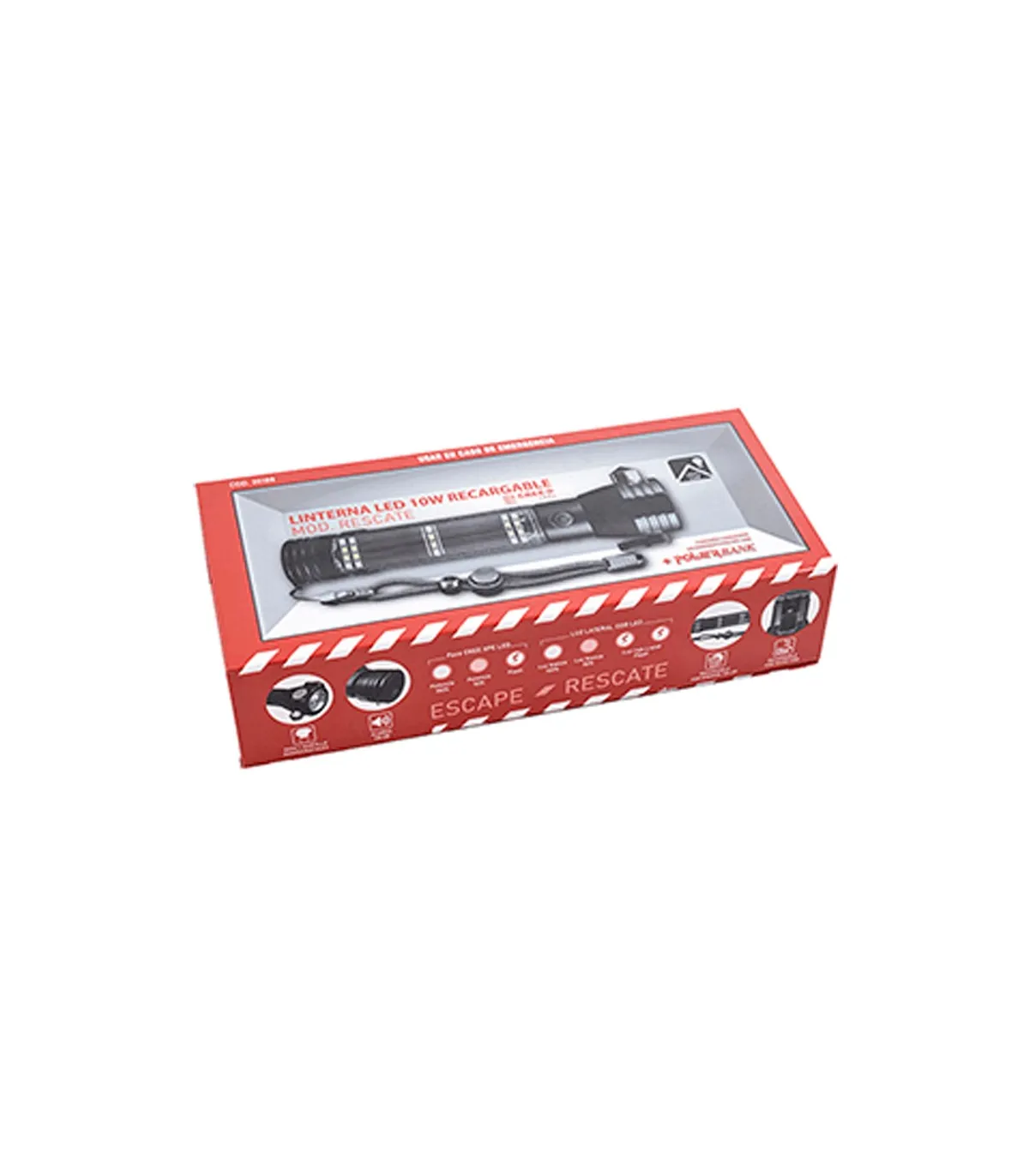Linterna recta polifuncional de 10W led recargable mod. Rescate