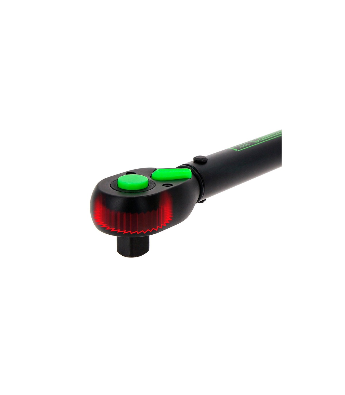 Llave dinamométrica de disparo con carraca 72 dientes, marca KS Tools gama Competition profesional. Cuadradillo 1/2", rango apriete 60-320Nm (6-32 KgM). Precisión +/-3%. Escala grabada en Nm y lbf-in fácilmente lefgible. Regulación de par prefijado en mango, con