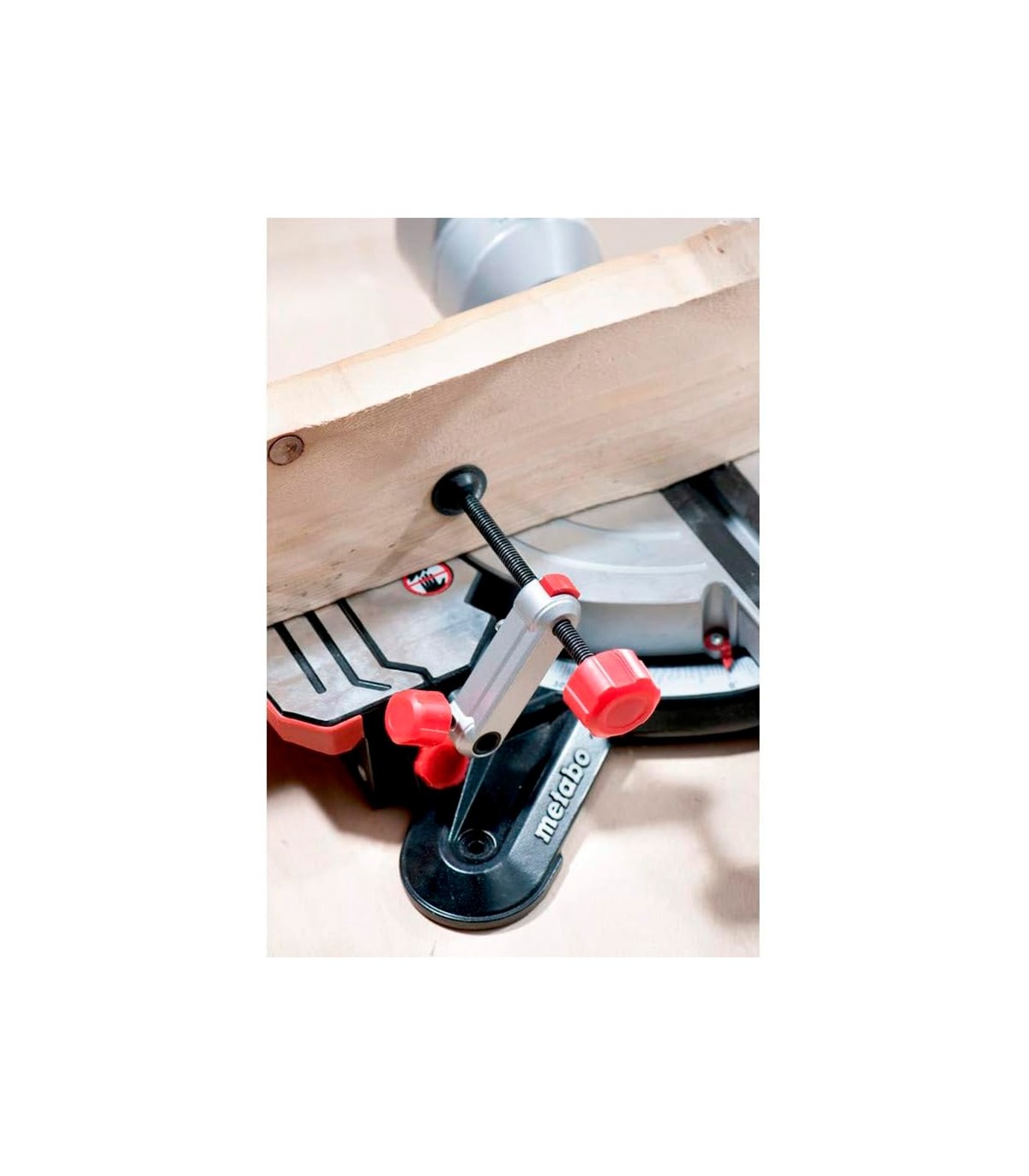 • Estribo de sujeción rápida para la fijación segura de la pieza de trabajo desde arriba o desde delante